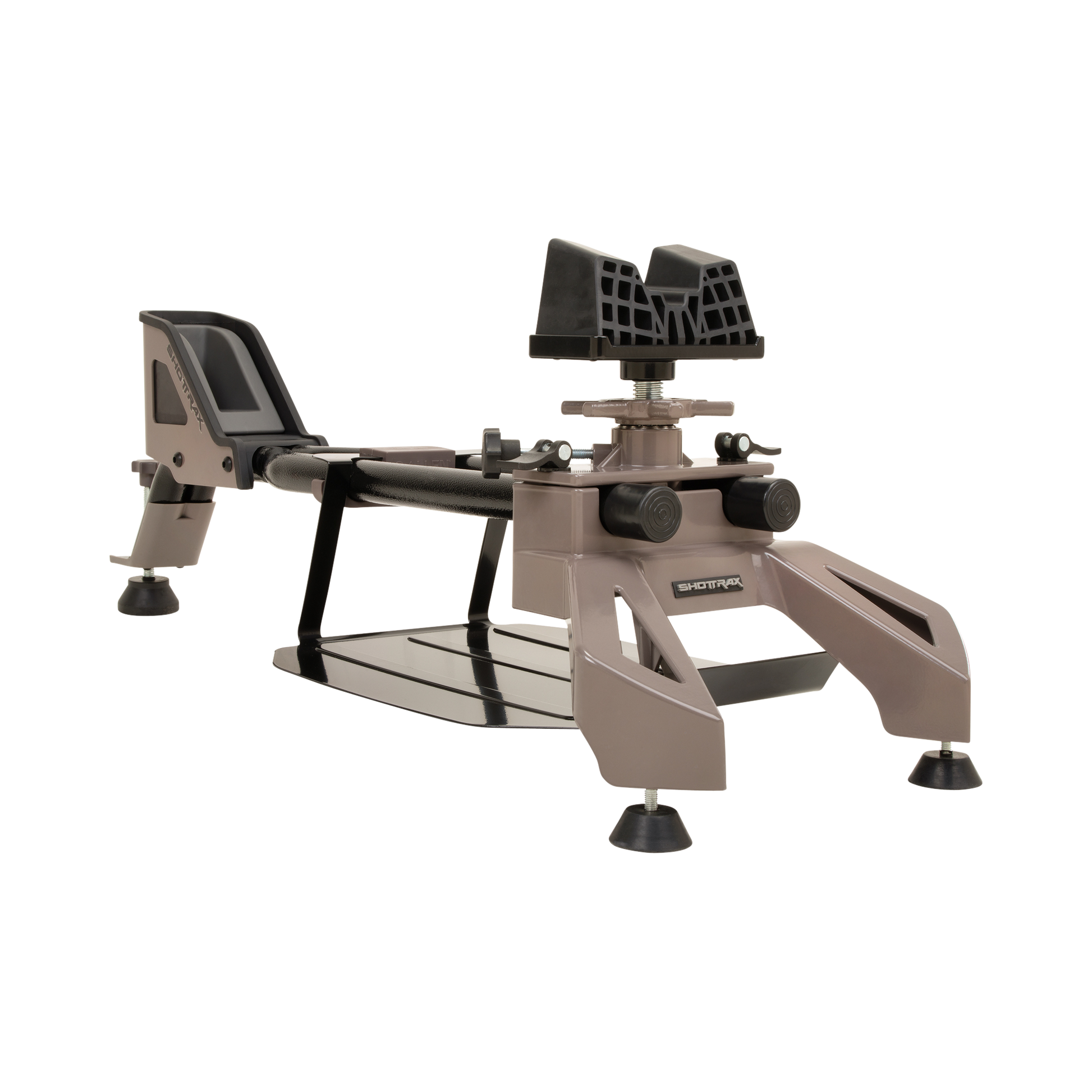 The shottrax recoil reducing rest by allen is designed with accuracy in mind.Designed with a fully adjustable frame length, adjustable soft rubber feet and a soft gun cradle make fitting this rest to your firearm a breeze.The elevation adjustment is handled by a fine threaded metal star-shaped wheel.The rear part of the rest has a steel-framed, rubberized, foam-padded boot made to take the recoil from even the biggest calibers.Overall the firearm cradle adjusts from 26 inches to 16 inches.