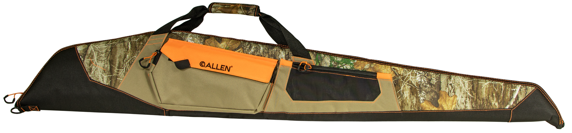 The uncompahgre 52-inch shotgun case by allen is made from rugged endura fabric in realtree edge camo with black accents.To help protect your prize shotgun the dense foam padding keeps it safe during transport.The one oversized zippered accessory pocket is great to carry all your shooting accessories.The zipper system is fully lockable to help keep your shotgun secure and the padded handle make transport to and from the range easy.