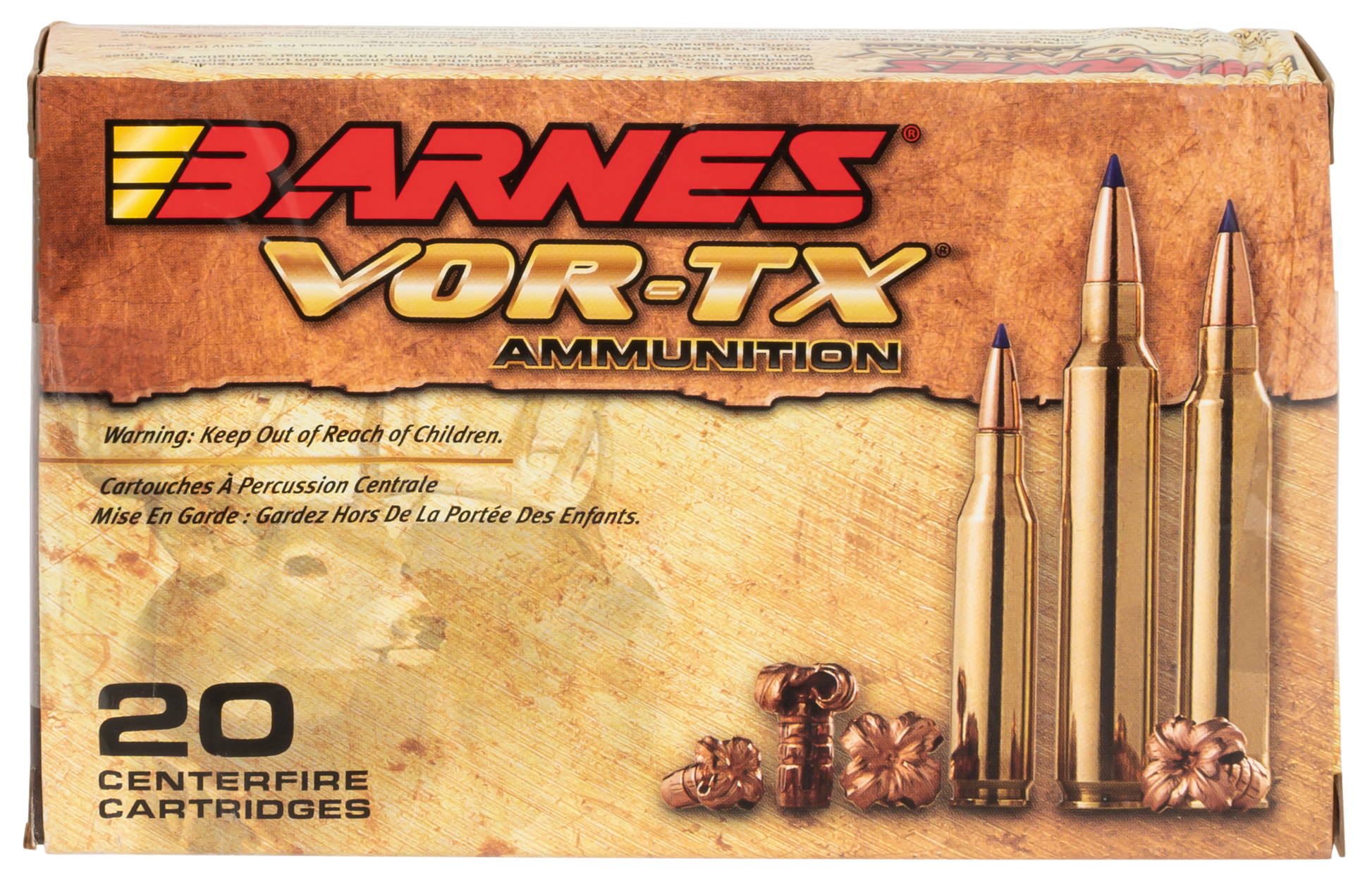 Barnes vor-tx is precision ammunition loaded with tsx, tipped tsx or tsx fn bullets to offer double-diameter expansion, maximum weight retention and excellent accuracy.The tsx bullets provide maximum tissue and bone destruction, pass-through penetration and devastating energy transfer.Multiple grooves in the bullet's shank reduce pressure and improve accuracy.Bullets open instantly on contact - no other bullet expands as quickly.Nose peels back into four sharp-edged copper petals destroying tissue, bone and vital organs for a quick, humane kill.Whether you're after whitetail deer, elk, antelope or boar, put 'em in the vor-tx and they're going down.