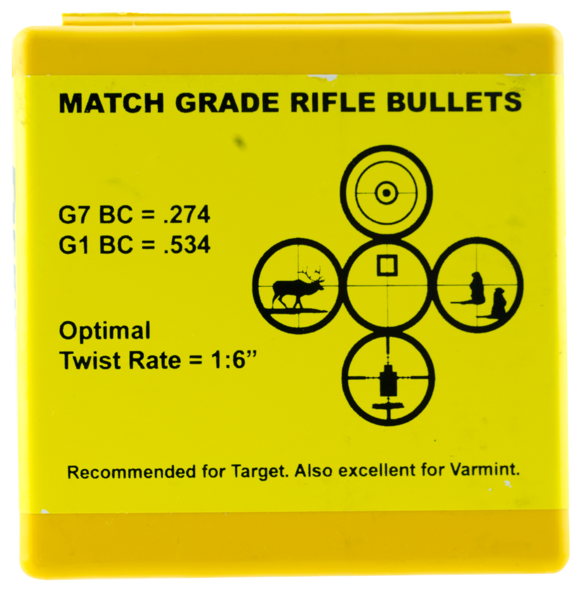 The target bullet line is made up of match grade bullets used all over the world to set records, win matches and improve scores of target competition shooters.Using j4 precision jackets, they are the most balanced bullets made.The flat base provides the tightest possible accuracy at short ranges, capable of sub 1/4 moa groups, with inherent stability.This vld has a long secant ogive for reduced drag and shoots flatter and is less affected by wind than other bullets.To keep performance high, target bullets are designed with thicker jackets that withstand more stress before bullet degradation occurs.