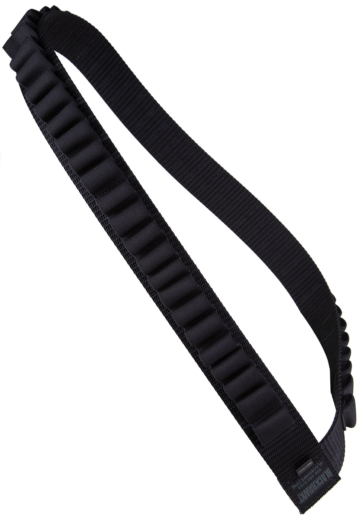 This blackhawk shotgun bandoleer allows you to carry 55 shotgun shells over your shoulder.It is made of heavy duty nylon 2.25" military pistol belt nylon webbing and 1.5" wide elastic to hold the shells secure.