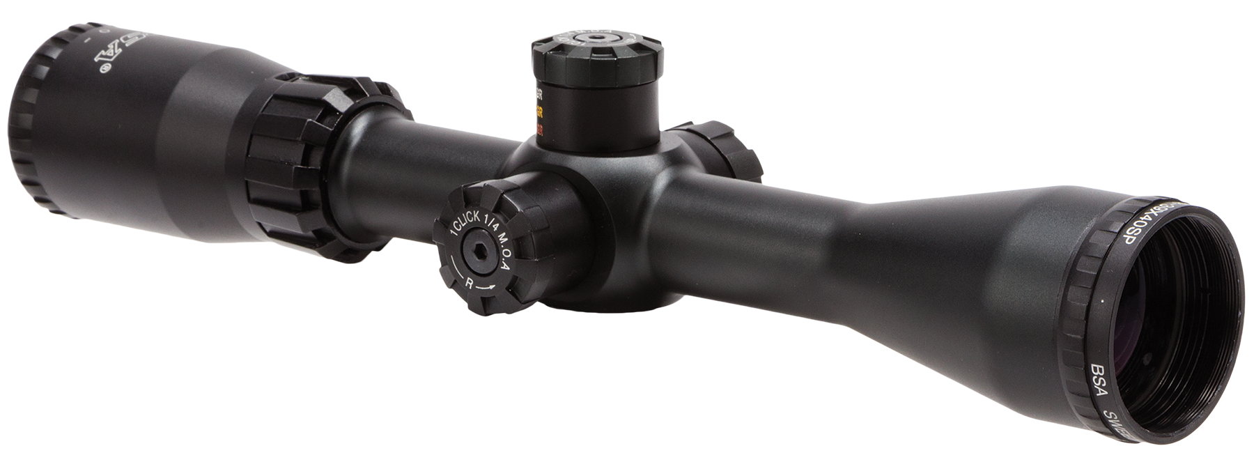 The bsa sweet.22 sp rifle scope is specifically designed for the.22lr.This series features side parallax adjustment from 10 yds to infinity, fully multicoated lenses, 3" sunshade, fast focus and elevation turrets ballistically calibrated for a 36gr, 38gr and 40gr cartridges.