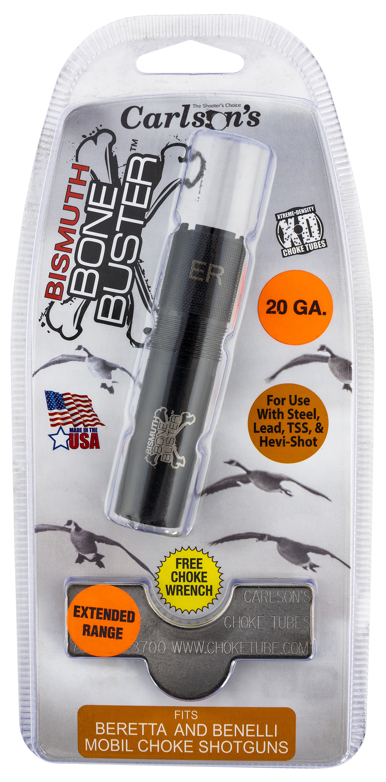 The bismuth bone buster choke tube is designed to produce excellent, dense patterns with all bismuth ammunition.It is cnc precision machining from 17-4 heat treated stainless steel featuring a longer parallel section (inside the choke) over conventional factory choke tubes.Combine this with extensive testing with various loads and you have the perfect choke to deliver devastating patterns with bismuth.The bismuth chokes can be used with all lead and hevi-shot loads.Experience the bone crushing dense patterns with the bismuth choke tubes.The extended range choke tube can be used with all steel shot not larger than #2.