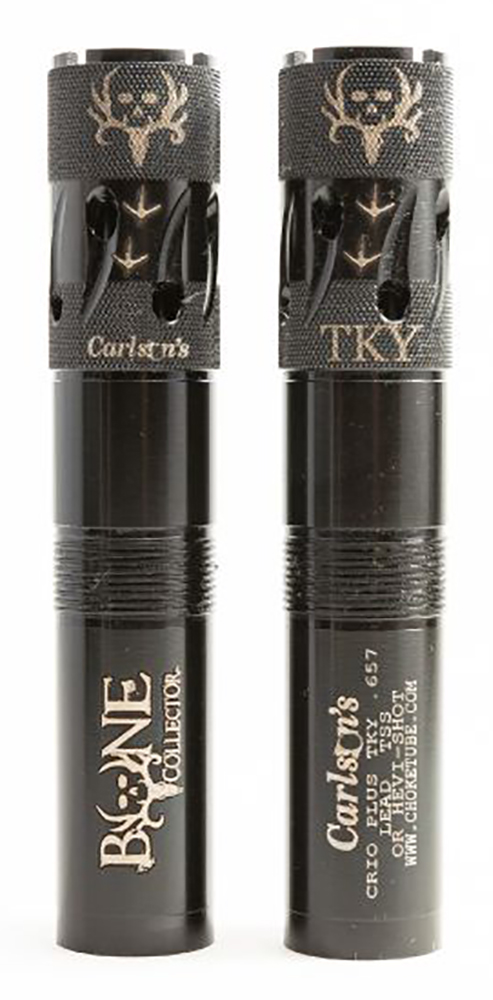 Carlsons ported bone collector turkey choke tubes feature a super tight, pattern tested constriction that throws extremely tight patterns with all shotshell ammunition loaded for turkey hunting including lead, nickel-plated, copperplated, bismuth, hevi-shot, tungsten, and tss.A longer taper section to the constriction (parallel section of choke tube) insure tight patterns with less flyers.More pellets on target every shot! the bone collector choke tubes are precision-machined from 17-4 heat treated stainless steel and feature a non-reflective matte black finish.Each choke tube constriction has been pattern tested and has thrown the best patterns with 4 through 10 shot.If you wish to use shot sizes larger than #4 shot, use a more open choke tube for optimum patterning.Remember to pattern your shotgun choke tube with the specific shot shell load you are going to be using.Different types and manufacturers of ammunition will throw different patterns from the same choke tube.