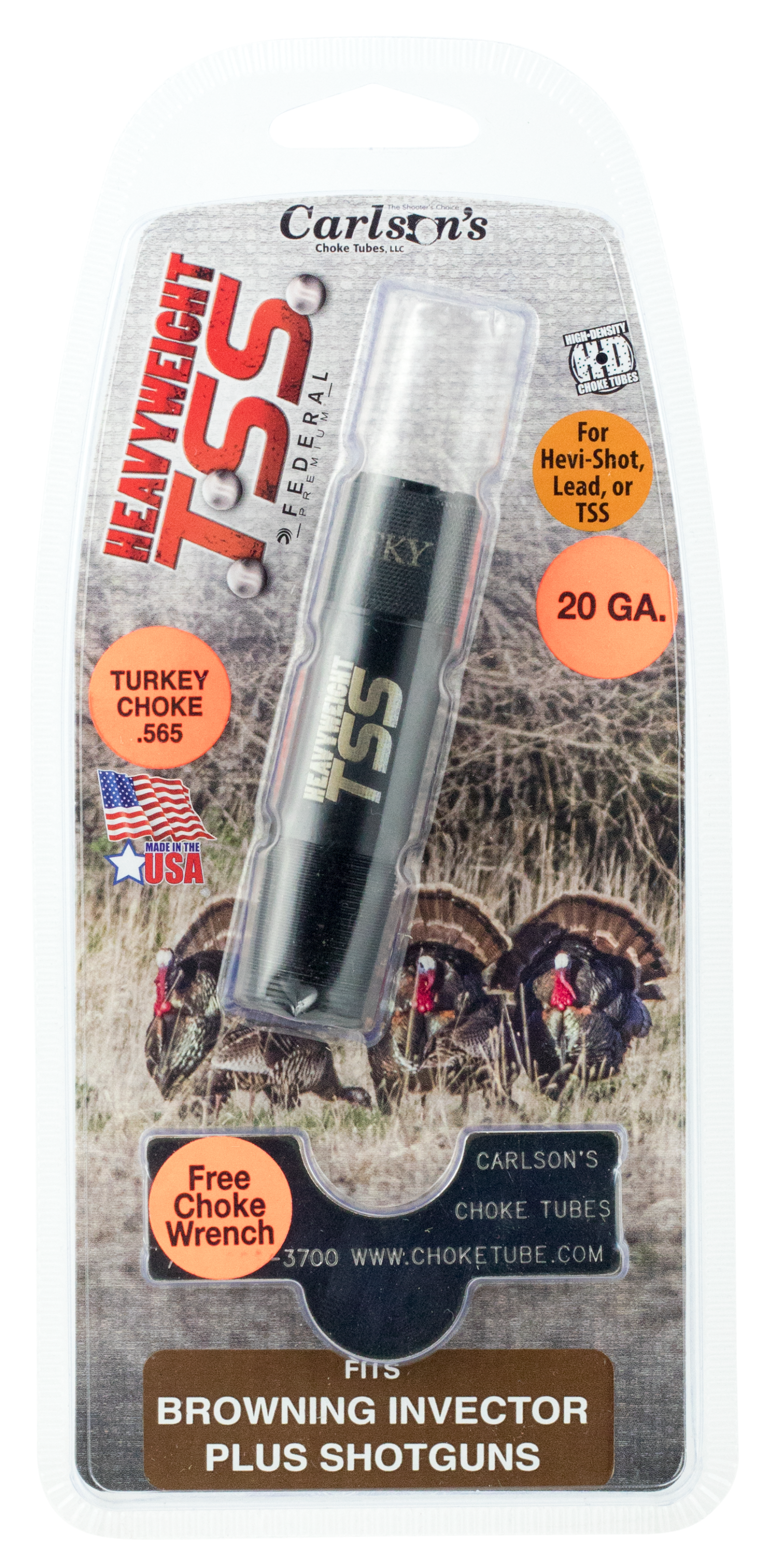Carlson's tss turkey choke tubes are optimized for federal premium heavyweight tss turkey loads but also work exceptionally well with other manufacturer's turkey ammunition (smaller shot size 7-9).The federal premium's heavyweight tss turkey load has an incredibly high pellet count in both 7 and 9 shot, along with the ability to carry energy further, makes them ideal for 12 and 20 ga.Tungsten super shot (tss) has a 22% heavier density than heavyweight shot and a 56% heavier density than traditional lead shot.It puts the maximum amount of pellets possible in a 10" circle at 40 yds.The 12 and 20 ga.Shells will include the flitecontrol flex wad that gives hunters the ability to shoot any choke tube they prefer.Long-range turkeys don't stand a chance.*note- not for use with steel shot.