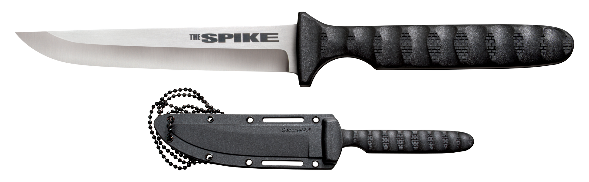 Our spike series neck knives are slim, light and super-tough.Their razor sharp, zero ground blades are complemented by heavily scalloped, textured handle scales that offer a comfortable and secure grip.The spike's ergonomic handles feature integral quillons that provide a safe stop for index finger and thumb, while deeply textured and sculpted griv-ex provides excellent positive traction even when your hands are cold, wet and slippery.They offer all the strength of a one-piece solid steel construction while still being light enough to carry all day without fatigue.Includes a secure-ex sheath.