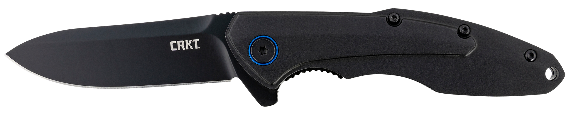 The caligo everyday carry pocket knife with a low-profile flipper opening and ikbs ball-bearing pivot mechanism.Caligo is the latin word for darkness, but you probably could have guessed that upon a first glance at the black oxide finish on the modified drop point blade.Coupled with the black anodized aluminum handles, it looks like its fresh off the showroom floor.The blue pivot ring elevates it to a league all its own.