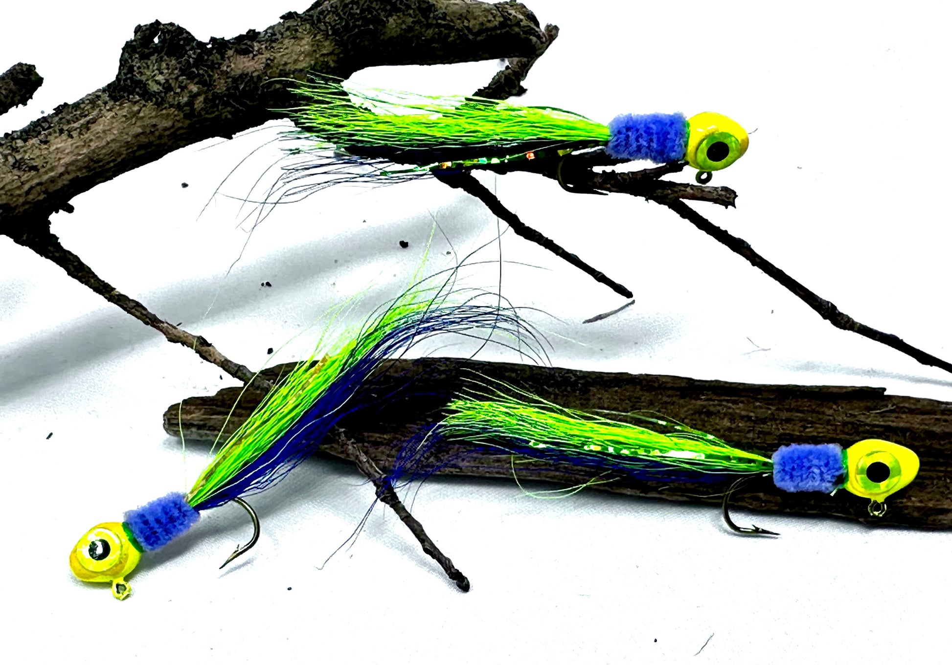 "Introducing Sid Louis Jr.'s premier custom hand-tied crappie jigs, meticulously crafted to elevate your fishing game to new heights! Our 3-pack of custom hand-tied jigs is the ultimate weapon in your tackle box, designed and perfected by none other than Sid Louis Jr. himself. (Available in sizes from 1/64, 1/32, 1/16, and 1/8 ounces. Other sizes made to order.)