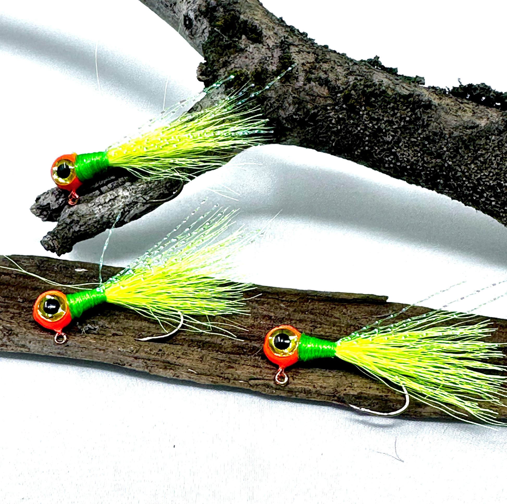 crappie hand tied jigs -popeye orange chartreuse, 3 pack custom hand tied crappie jigs by Sid Louis Jr.