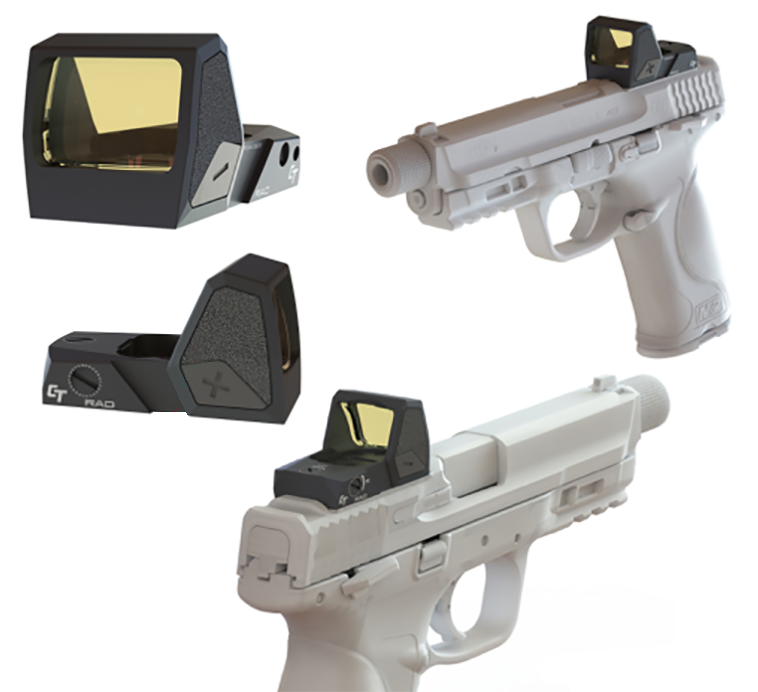 The rad (rapid aiming dot) and rad pro electronic sights are compact open reflex sights for full size pistols.Featuring a 3 moa round aiming dot, the rad will elevate your pistol's performance instantly.Easily user-installed by utilizing an industry standard mounting interface, they boast a high efficiency led for years of use.Run time 20,000 hrs.Auto/manual shutoff.Includes cr1632 battery.