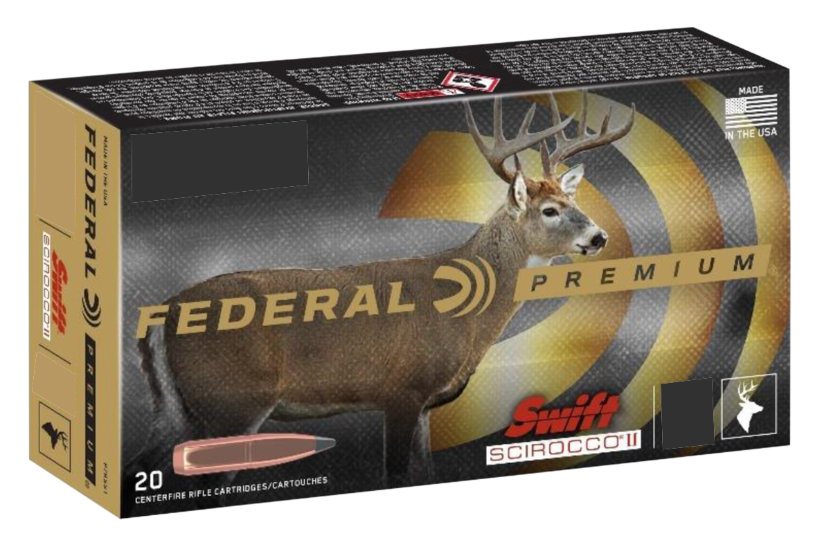 Push effective range to new extremes while delivering a more lethal blow on impact with federal premium swift scirocco ii loads.The polymer-tipped bullets streamlined design and high ballistic coefficient produce flat trajectories, while retaining more velocity and energy downrange.Aided by its polymer tip, the bonded scirocco ii expands at minimal velocities yet offers high weight retention at close range.