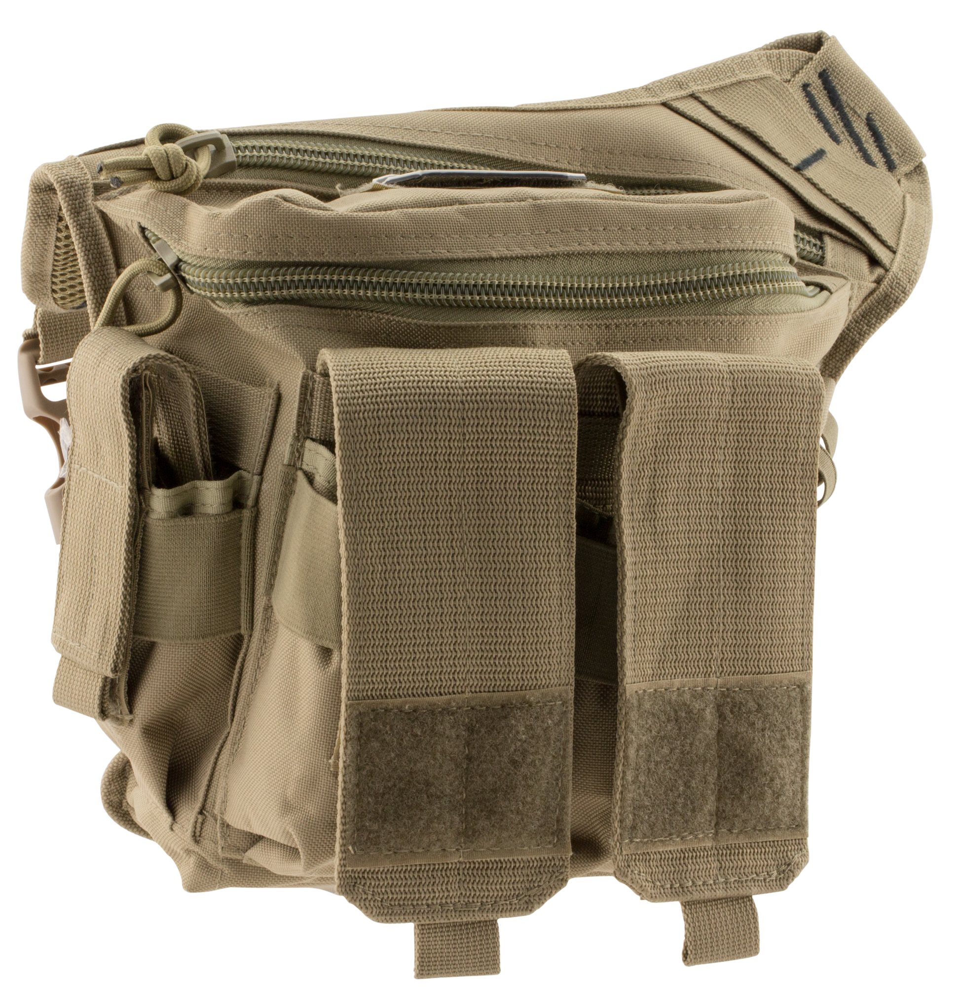 This rapid deployment pack features a removable handgun holster can be configured for right or left hand draw.It comes with a durable shoulder strap, carry external compartments include 4 ar magazine pouches, 1 pisto lmagazine pouch and 1 shotgun shell pod that will hold 4 shot gun shells.Internal storage compartment allows 3 additional pistol magazines, 1 box of 12 ga.Shotgun shells, knife, radio, phone, small first aid kit and more.