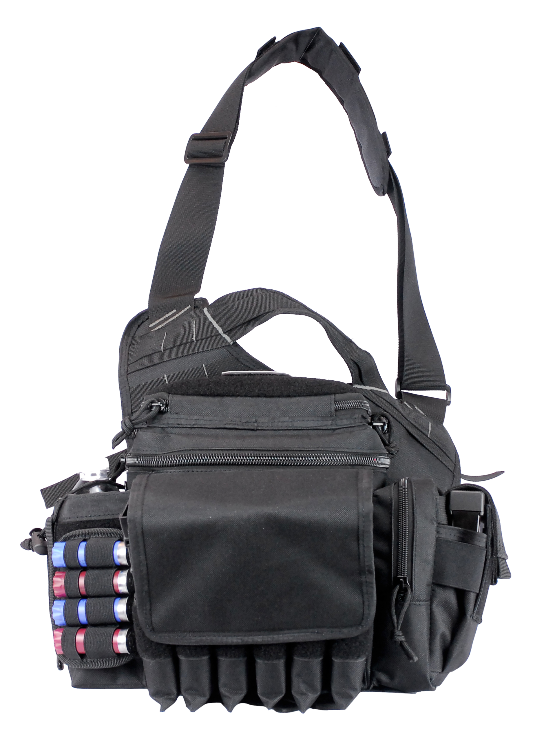 The rapid deployment sling pack features a removeable handgun holster which can be configured for right or left hand draw.This pack also has external compartments which include 4 ar magazine pouches, 1 pistol magazine pouch and 1 shotgun hook and loop backed shotgun shell pods that will hold 4 shotgun shells.Its internal storage compartment allows 3 additional pistol mags, 1 box of 12 ga.Shotgun shells, knife, radio, phone, small first aid kit and more.