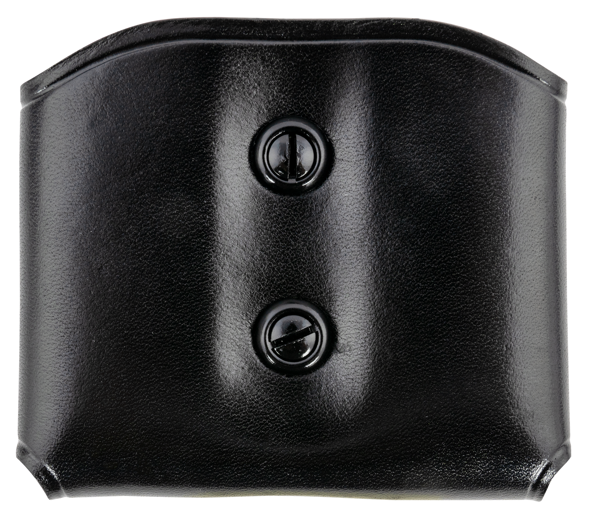 The dmc is an exceptional wrap-around design featuring two one-way snaps on back, allowing it to fasten to your belt vertically.It also includes two tension screw adjustments on front, providing a precision fit.Constructed of premium saddle leather and designed to fit belts 1" - 1 1/4" through belt slots and 1 1/2" - 1 3/4" through the belt channel.