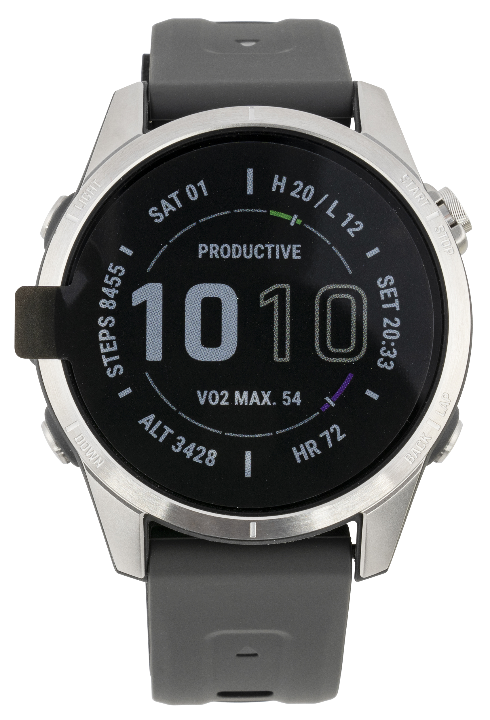 Combining the best features of our fitness and outdoor watches, the smaller-sized fnix 7s multisport gps watch blends cutting-edge design and performance with 7-day-a-week wearability.Traditional button controls that work in any environment are matched with a responsive touchscreen interface for quick access to selections and map features.Access multiple global navigation satellite systems (gps, glonass, galileo).With the sapphire editions, get access to multiple frequencies sent by navigation satellites for improved position accuracy in areas where gnss signals are reflected, weak or typically don't penetrate.Download topoactive maps via wi-fi connectivity from around the world or get your local region preloaded on the sapphire edition watch to keep your explorations on track.View terrain contours, elevations, summits, parks, coastlines, rivers, lakes and other geographical features.Follow a route or course with help from turn-by-turn directions, which let you know ahead of time when the next turn is coming.Receive emails, texts and alerts right on your watch when paired with your compatible smartphone.Download songs plus playlists from your spotify, deezer or amazon music accounts (subscription may be required).Use your wireless headphones for phone-free listening.Breeze through checkout lines with garmin pay contactless payments through participating providers.Get up to 16 days of battery life in smartwatch mode and 42 hours in gps mode.Its health snapshot features allows you to log a 2-minute session to record key stats, including heart rate3, heart rate variability, pulse ox2, respiration and stress.The watch also constantly samples your heart rate3 and will alert you if it stays too high or too low while you're at rest.It also helps gauge how hard you work during activities even while swimming.Then generate a report with those stats to share via the garmin connect app on your compatible smartphone.A first-of-its-kind pacepro feature helps keep you on pace with grade-adjusted guidance as you run a course.Choose from preloaded animated workouts, or download more from the garmin connect online community when paired with your compatible device.These free adaptive training plans feature guidance from expert coaches and adapt to you and your goals.Workouts sync right to your watch from garmin connect.Track the details of every ride with mountain biking metrics plus specialized grit and flow measurements that rate trail difficulty and how smoothly you descend, giving you a score to beat next time.This watch works with the surfline widget to give you tides, wave height, wind and surf rating for the five nearest locations and also works with the surfline sessions app to create videos of every wave you ride in front of a surfline camera.