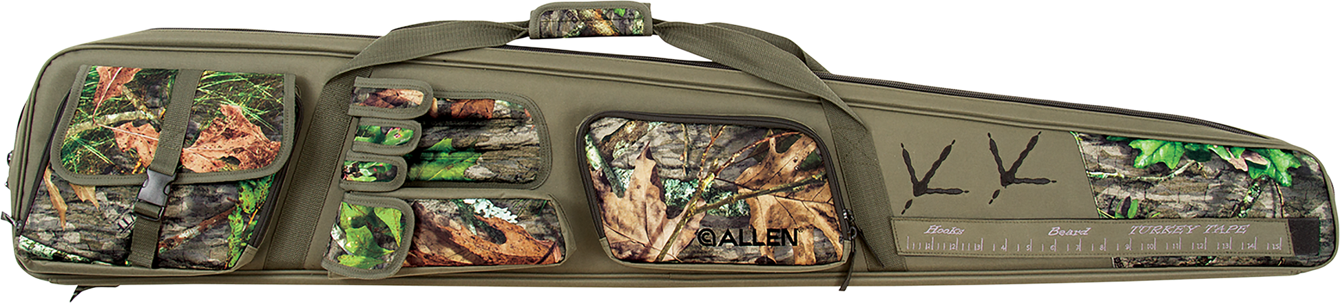 The gear fit pursuit shocker shotgun case is purpose-driven and designed so you can bring all your turkey essentials with you.The case fits shotguns up to 52" and features an integrated turkey beard and spurs tape.The front pocket has neoprene sleeves for your slate calls and customized pockets for your striker and box calls.The rear pocket has four slots for mouth calls and four choke tubes, plus room for other accessories, like gloves and a face mask.The inside of the case features a heavy-duty, dual-density foam for ultimate protection.The lining is easy to clean and the oversized zippers make it easy to open and close.The shocker turkey shotgun case is lockable to keep your shotgun safe.