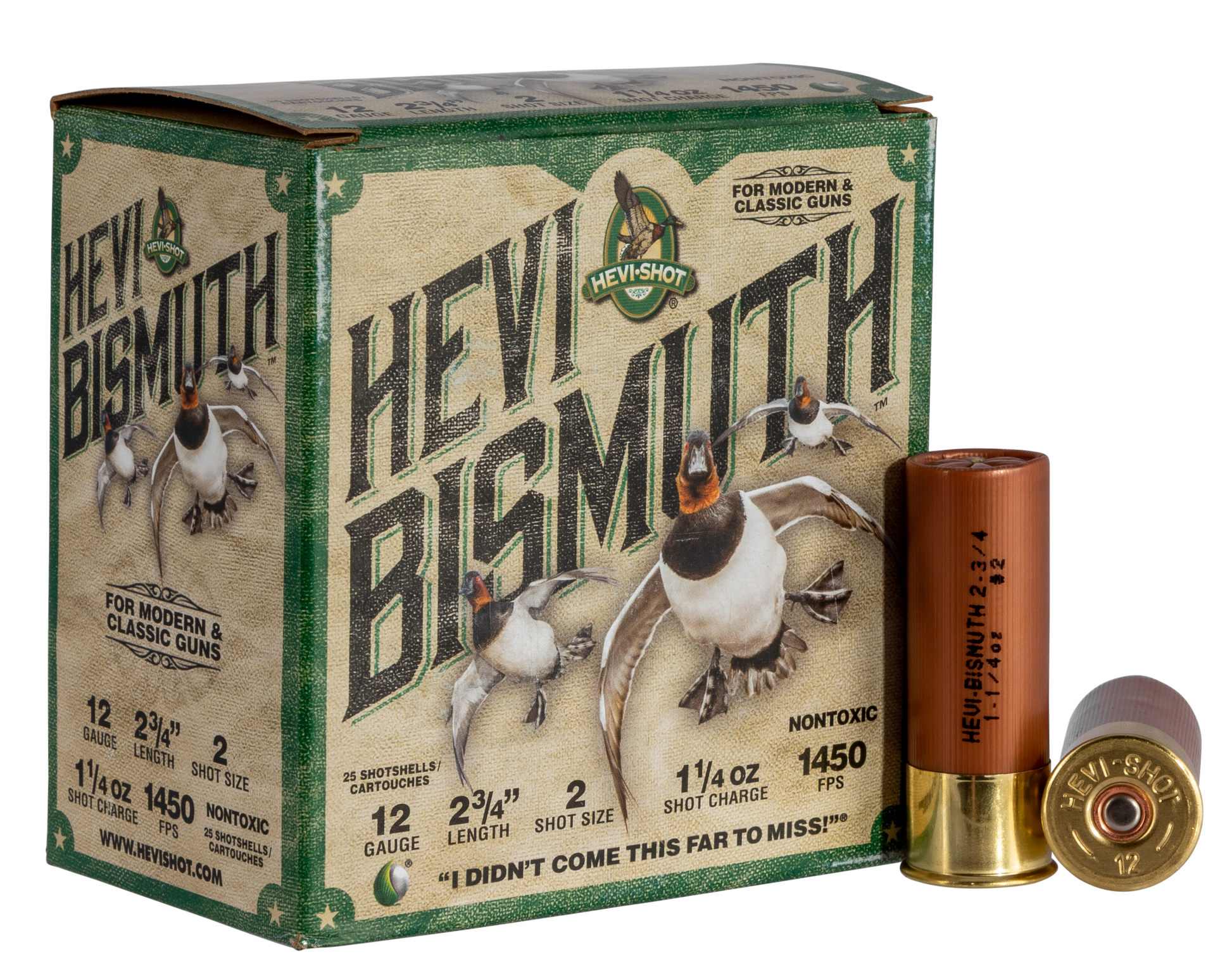 Hevi-bismuth waterfowl shells utilize bismuth, which is 22% denser than steel, to deliver more downrange lethality at an affordable price.And, its safe for older fixed choke and fine classic doubles shotguns.