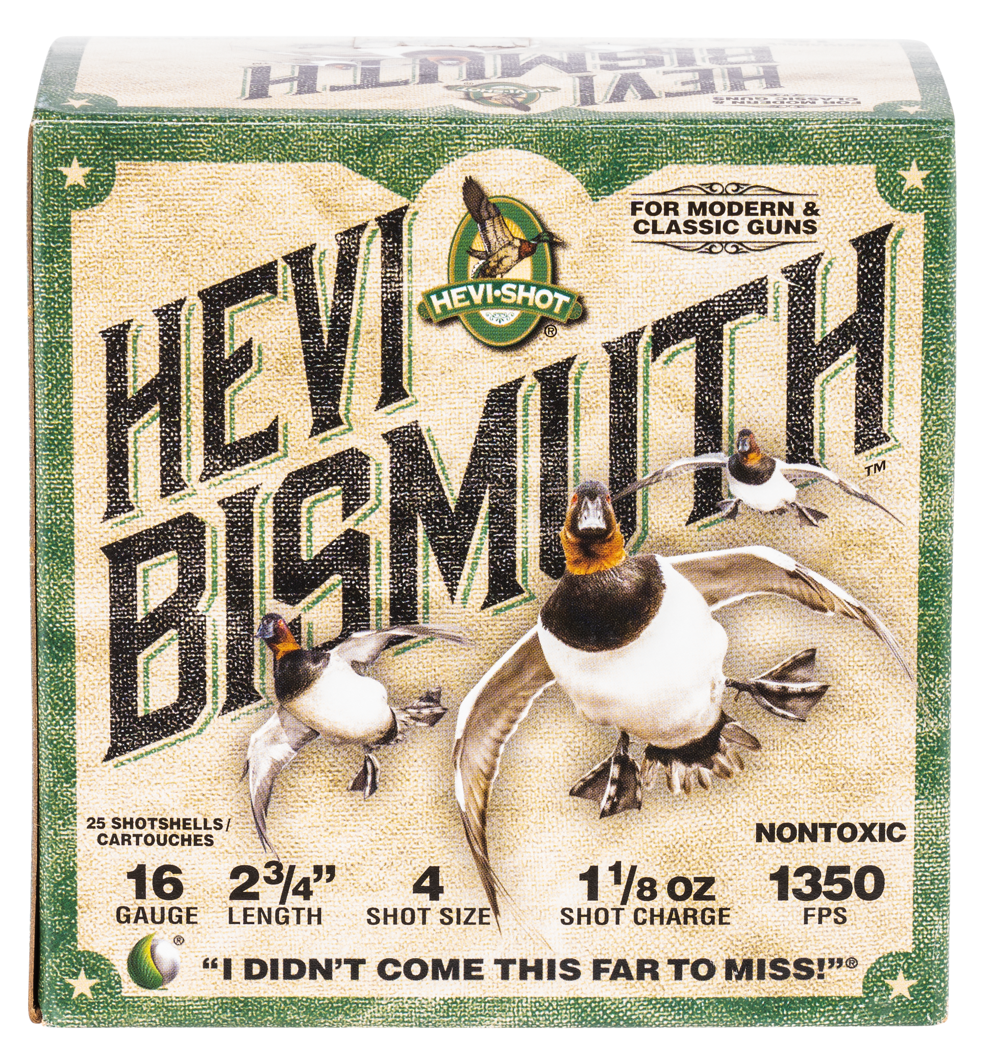 Hevi-bismuth waterfowl shells utilize bismuth, which is 22% denser than steel, to deliver more downrange lethality at an affordable price.And, its safe for older fixed choke and fine classic doubles shotguns.