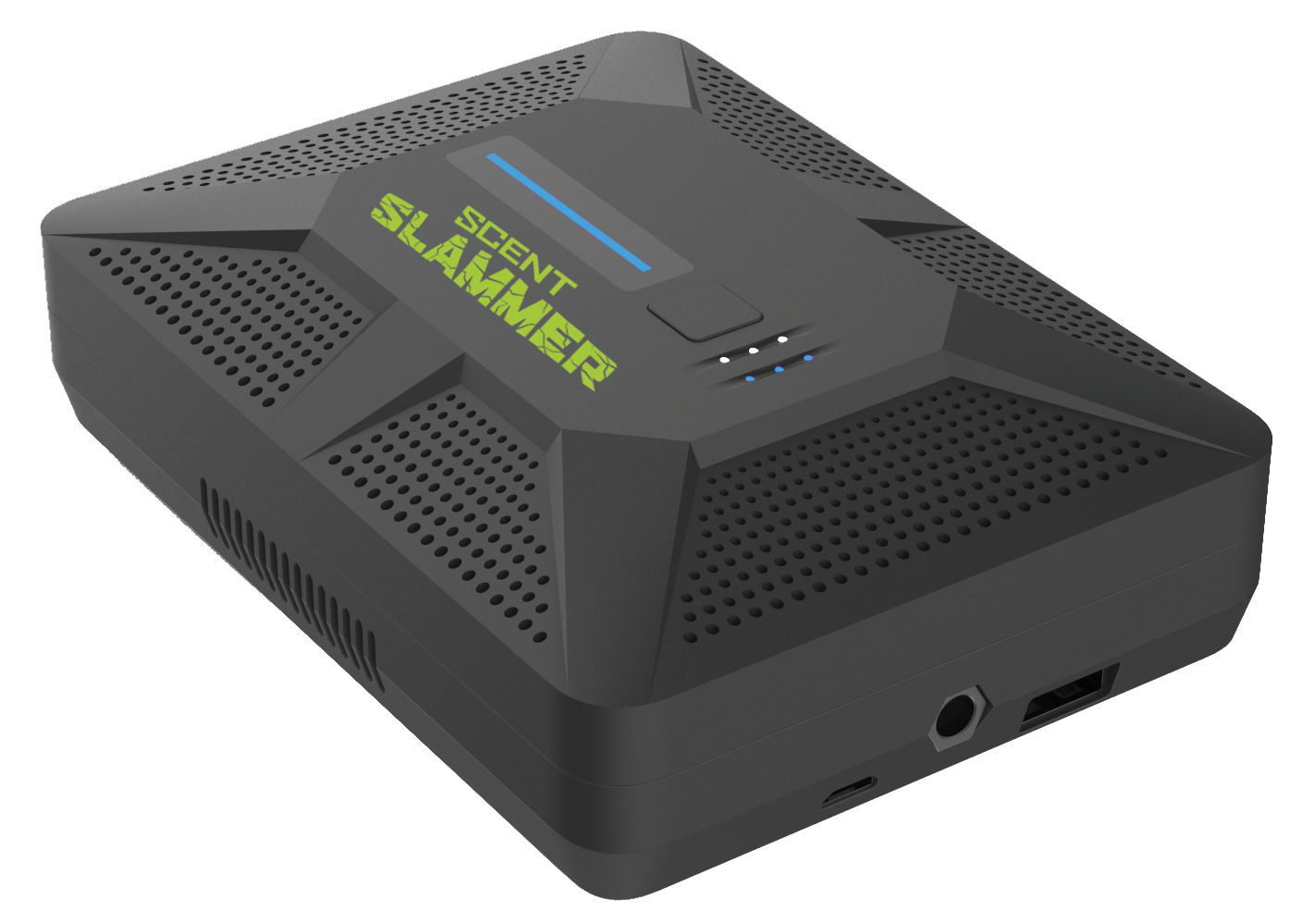 Hme's scent slammer 2-in-1 ozone hybrid oder eliminator eliminates odor on clothing and gear.It kills bacteria, virus, and is 100 percent chemical-free, leaving no scent or residue making it ideal in rooms for continuous use, or on the go in duffel bags.The purifier utilizes three (3) time settings (10/20/30 min) and has room coverage up to 320sq ft.Its has a rechargeable 5,000mah battery and an ozone output of 20mg/h.Included is a micro usb charging cable, usb ac adapter, and wall mounting hardware.