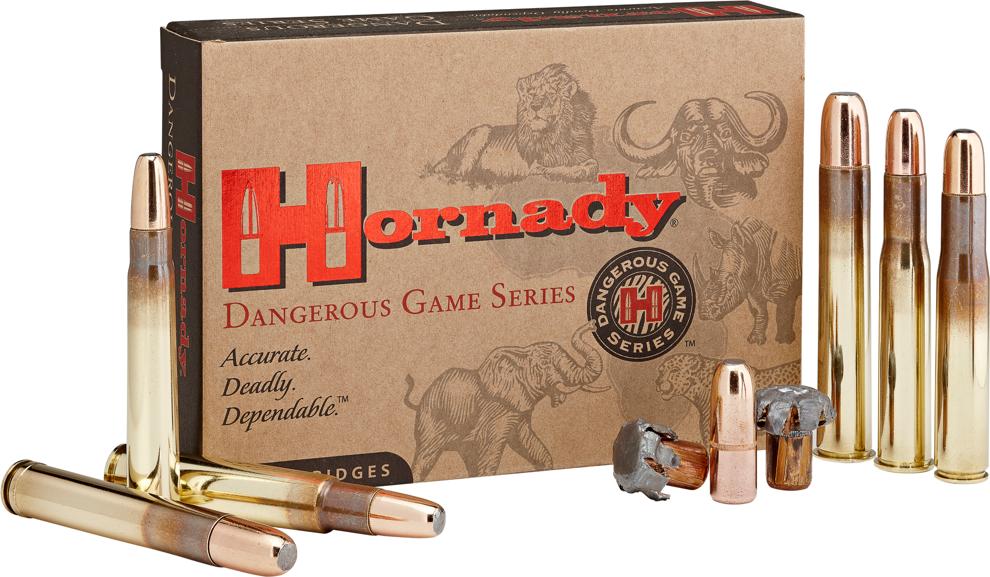 Hornady's dangerous game series ammunition is designed specifically for large game and safari hunting.All ammunition is designed to work well in all rifles, and meticulous attention was devoted to ensure that ammunition regulate properly in both classic doubles and their younger counterparts.The dgx bonded (dangerous game expanding) bullets are made with a hard lead/antimony alloy cone, surrounded by a copper clad steel jacket.These bullets feature a flat meplat for straighter penetration and create more energy transfer than a simple round profile bullet.