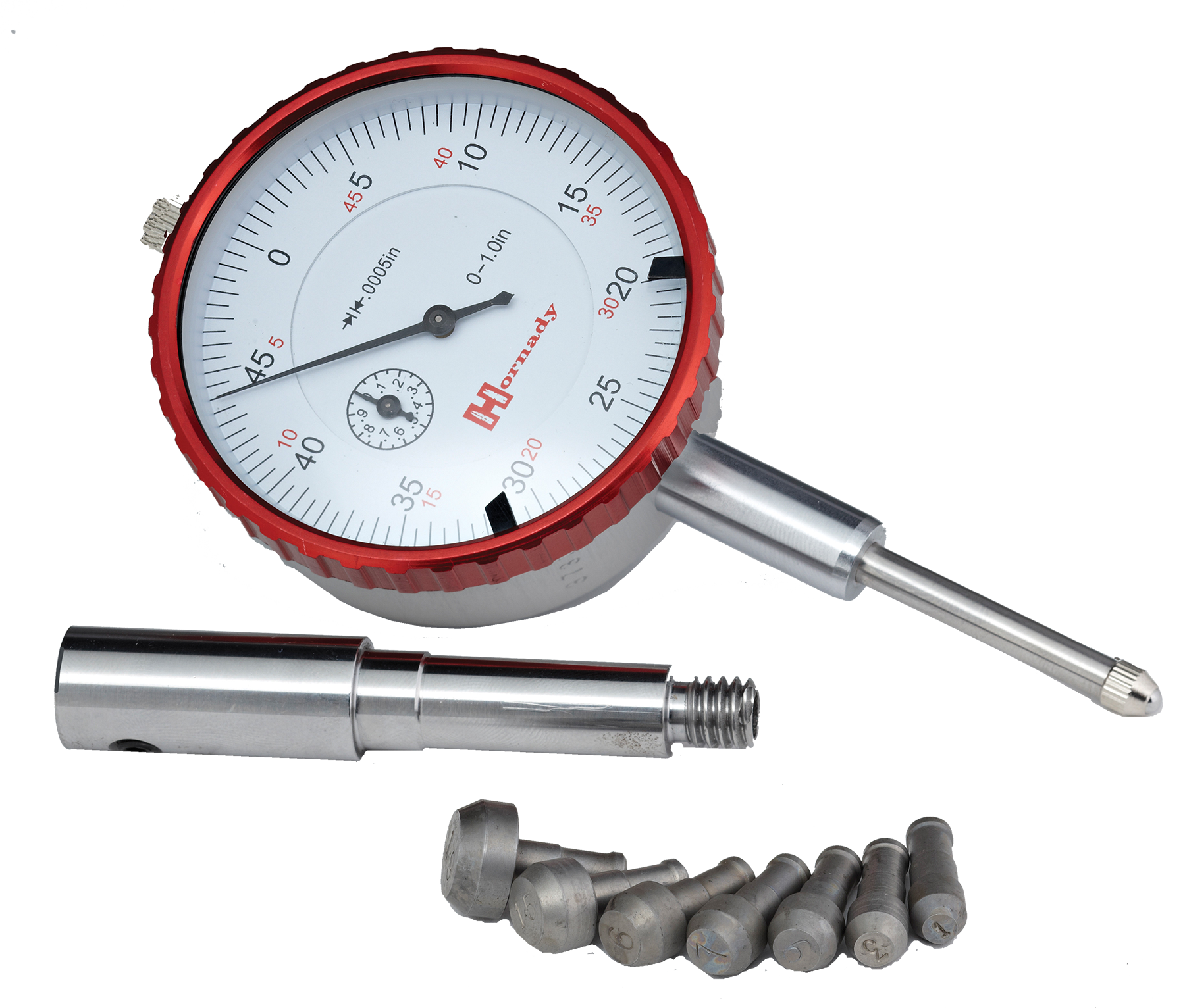 The neck wall thickness gauge.0005 increment dial indicator helps identify neck thickness variations so you can sort and measure case necks or verify your neck turning operation ultimately enhancing accuracy.*accessory to the concentricity tool (not included).