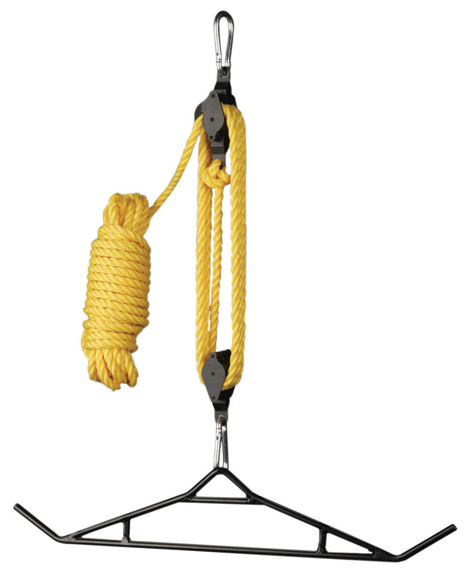 With the super mag 6:1 ratio lift system, you can easily raise and lower up to 1,500 pounds of game while the included magnum gambrel supports the hind legs of the animal.This essential piece of hunting equipment includes a 55 ft tangle-proof, rot-resistant rope and 6-pulley system with 6:1 lift ratio.