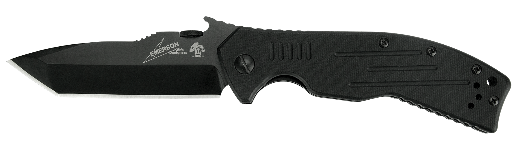 Kershaw knives and emerson knives have joined forces on a series of knives that combine the precision engineering of kershaw with emerson's functional design.The cqc-8k features a single-bevel tanto blade.Black-oxide coating protects the blade and makes it non-reflective.The g10 handles provide secure grip and a locking liner means safe and solid blade lock up.The cqc-8k is a manual opener using either the thumb disk or the patented emerson wave shaped feature, this opening feature enables the knife to be opened as it is removed from the pocket.By the time the knife has been fully withdrawn from the pocket, the blade is deployed and ready for use.A small wave-shaped tab on the top of the blade is built to catch on the pocket seam, opening the knife as it comes out of the pocket.This instant-open feature is a favorite among military, rescue and law enforcement knife users.
