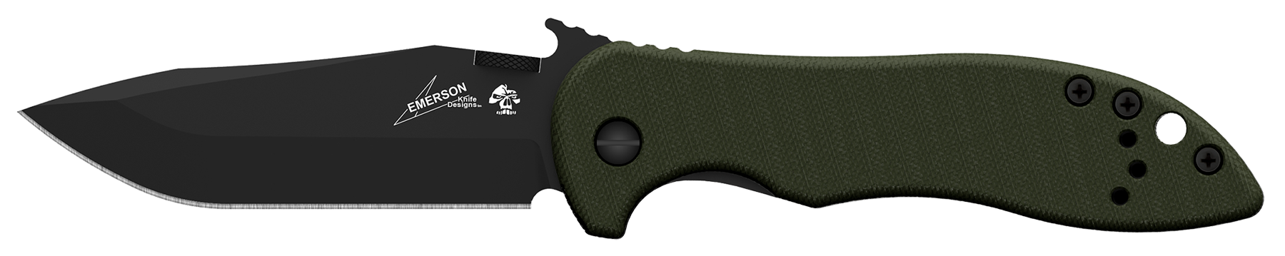 This right-sized kershaw-emerson looks great in olive drab.Kershaw knives and emerson knives have joined forces on a series of knives that combine the precision engineering of kershaw with emerson's uncompromising functional design.The cqc-5k features a drop point blade for versatile cutting capability.Black-oxide coating protects the blade and makes it non-reflective, too.G10 handles provide secure grip and a locking liner means safe and solid blade lock up.