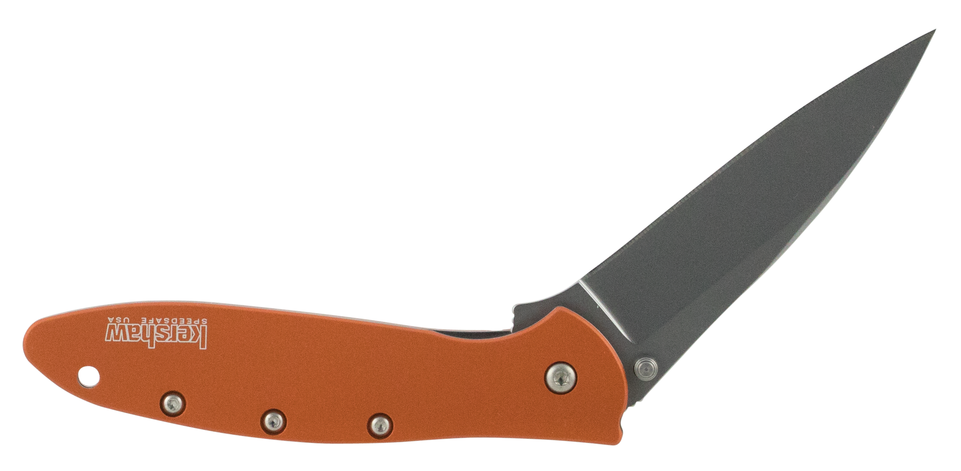 This leek features an orange anodized-aluminum handle that has a fade-resistant, scratch-resistant dye that permanently is bonded to the aluminum.The business end of the knife is a task-ready 3" blade of sandvik 14c28n stainless steel, a steel designed in a partnership between kershaw and sandvik.This high-performance steel enables kershaw to make the leek's blade razor sharp out of the box.The drop-point blade shape makes it a good slicing knife, while the slim tip gives it excellent piercing and detail work capabilities.Whether you're left or right handed, it's easy to open your orange leek with speedsafe assisted opening.A simple pull back on the ambidextrous flipper and the leek's blade is ready to go to work.For safety, a locking liner keeps the blade locked open during use and a tip-lock slider locks it closed when folded.The pocket clip is reversible for tip-up or tip-down carry and the handle is drilled to accept a lanyard.Made in the usa.