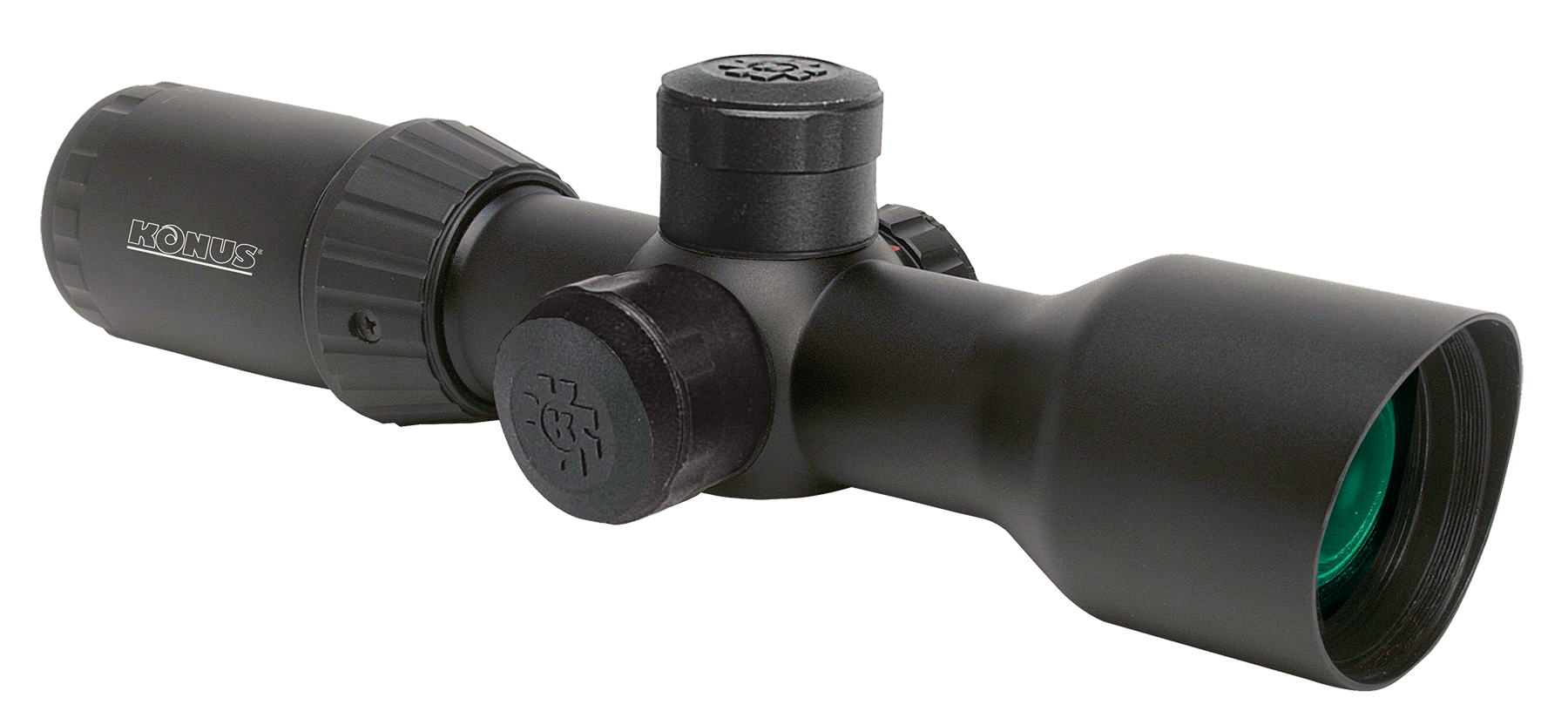 The konuspro t30 is a configuration that is an ideal fit fir the tactical field.The scope features a one-piece tube construction; dual illuminated engraved 550 ballistic reticle for precise shooting out to 550 yards.This unique reticle takes the guess work out of hold over angles for even the most difficult of shots.Lateral hash marks allow for precise leads of moving targets as well as compensating for strong crosswinds and can be illuminated in blue or red for different lighting conditions.The fully multi-coated optics are clear and bright, while providing the shooter with long eye relief.Includes battery, lens covers and a lens cleaning cloth.