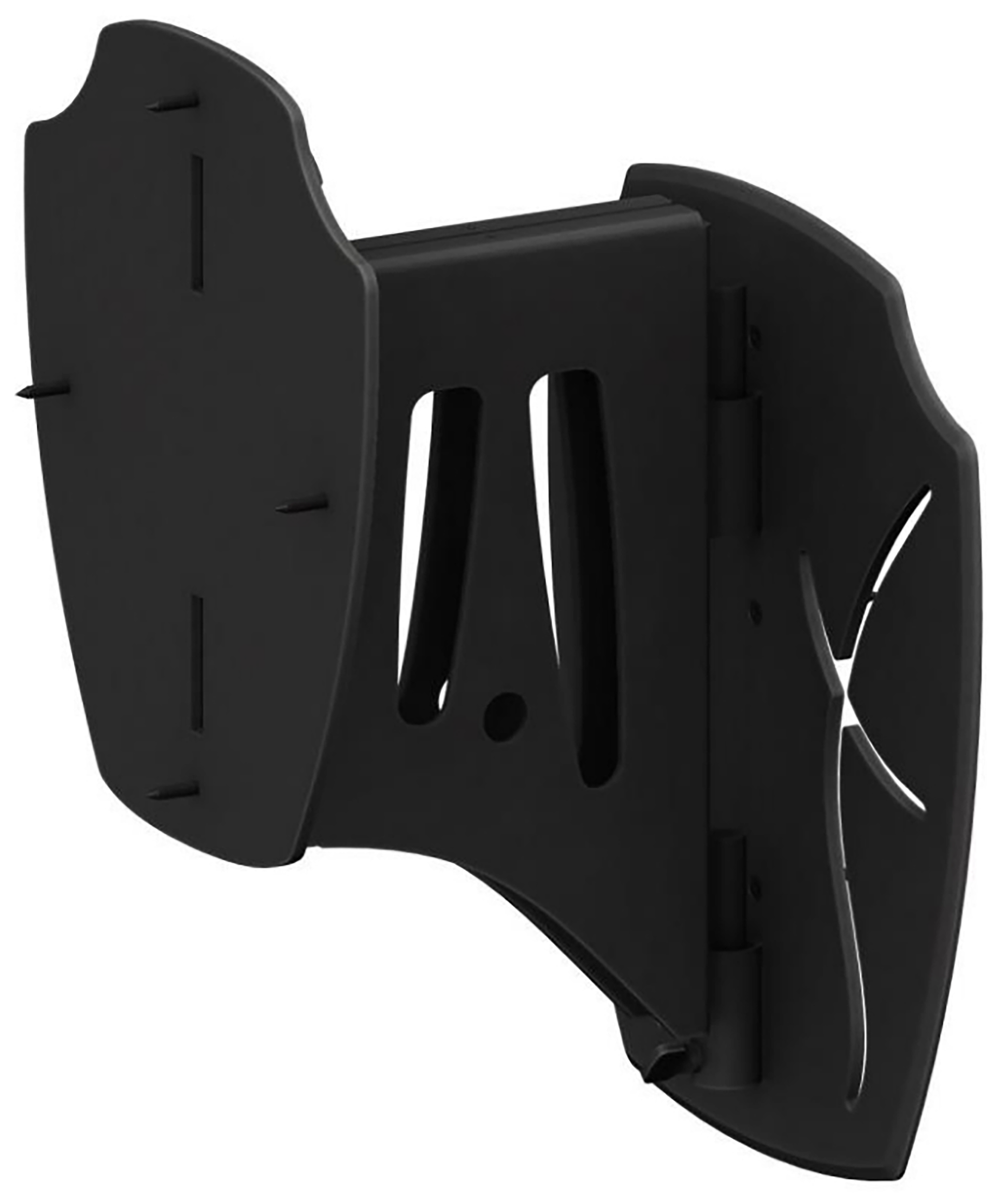 This large shoulder mount is made from powder coated steel and hangs on the wall.It has a single 8" swing arm that can swivel up to 180 degrees.The shoulder mount can hold up to 150 lbs.