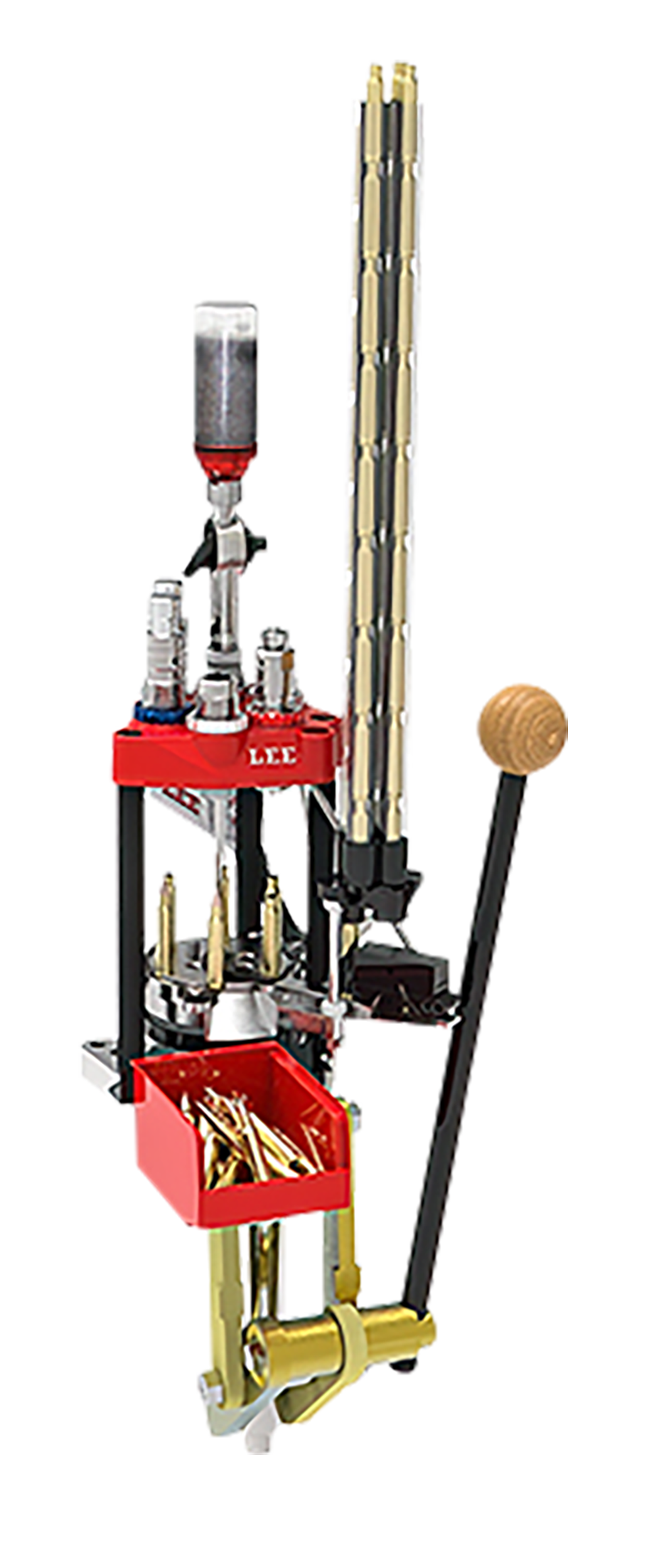 This 9mm luger six pack pro kit includes six pack progressive press, auto drum powder measure, shell plate, universal case feed magazine, and lee breech lock dies (carbide full length sizing die, powder through expanding die, bullet seating die, and instructions with load data).Carbide factory crimp die is sold separately, available as an accessory.Its six stations allows any brand of die to be used in line bullet feed dies, powder check dies and such.Its simple and reliable automatic indexing has just one moving part, replaceable in seconds, and no tools required.It also never requires adjustment.The stroke and clearance sufficient for largest magnum rifle cases.It also uses the same all steel linkage found on the classic cast 50 bmg press.Its massive 28.4mm ram glides through 82 mm of solid steel giving the ram over 7300 mm of solid support.The spent primer tube collects dirty and gritty spent primers.All dies securely fastened in the upper die carrier with lee smart lock bushings.No more turret, tool head to replace, or move during use.The automatic priming system is simple, reliable, and safe with any brand or size of primer.There are primes at the bottom of stroke, so all six stations are available for operations.The automatic case inserter works with any case and can be manually fed through the convenient loading port.Which includes the lee case feed magazine.This works with most handgun cases and all ar rifle cases.Its easy to set case retainers on every station.No springs, plugs or buttons to lose or tinker with.The cartridge changes over in seconds, including primer size with no adjustments.The automatic case ejector reliably whisks away your completed round to the ammo bin.This press includes combination tool rack, bin bracket, along with free ammo bin.