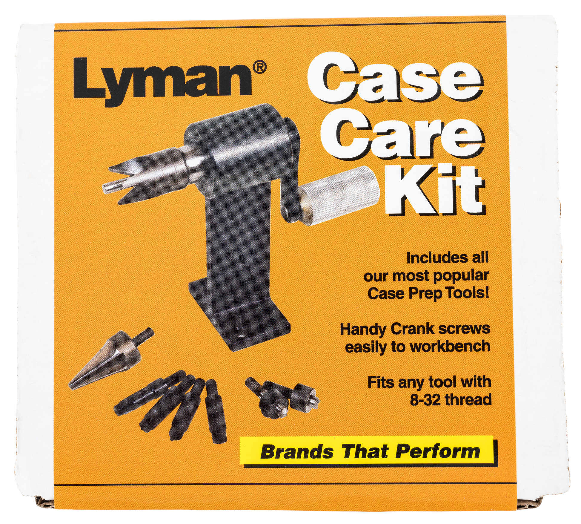 The utility crank accepts most lyman accessories and any tool with an 8-32 thread.Kit includes both large and small primer pocket reamers, cleaners, uniformers and inside and outside deburring tools.