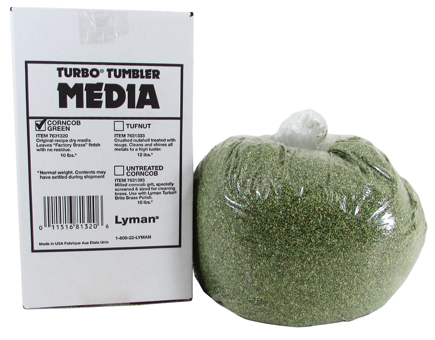 Lyman case cleaning media is the most effective choice for cleaning dirty and tarnished cases.Corn cob plus is made from natural processed corncobs and a polishing agent.A few hours in a lyman turbo tumbler and cases are clean, polished and ready for reloading.