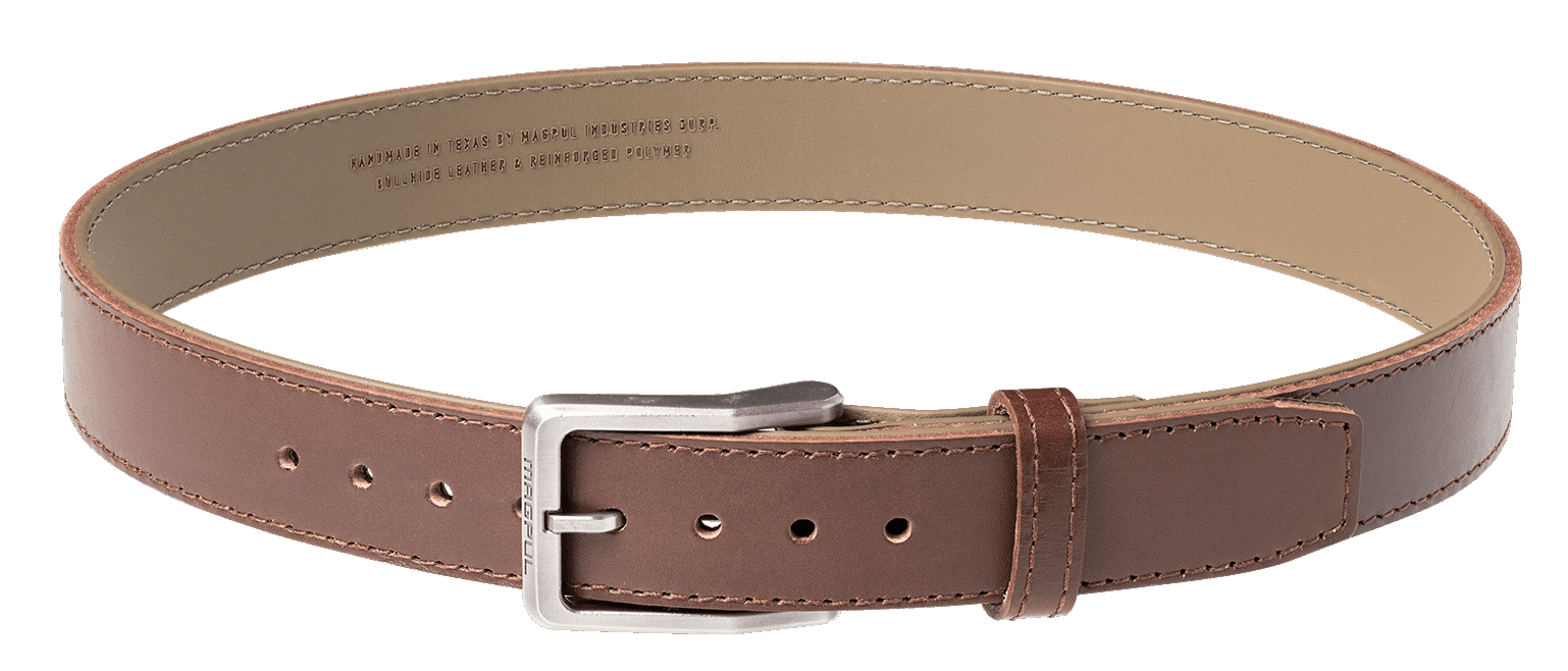 The magpul tejas gun belt el original provides gun belt rigidity with dress belt comfort and offers a stretch and sag-free performance.It is made from 100% north american bull hide, backed by a supporting layer of flexible polymer and a easily-removable buckle.It measures 1 1/2" wide and 1/4" thick, so it will fit most belt loops and holsters comfortably.