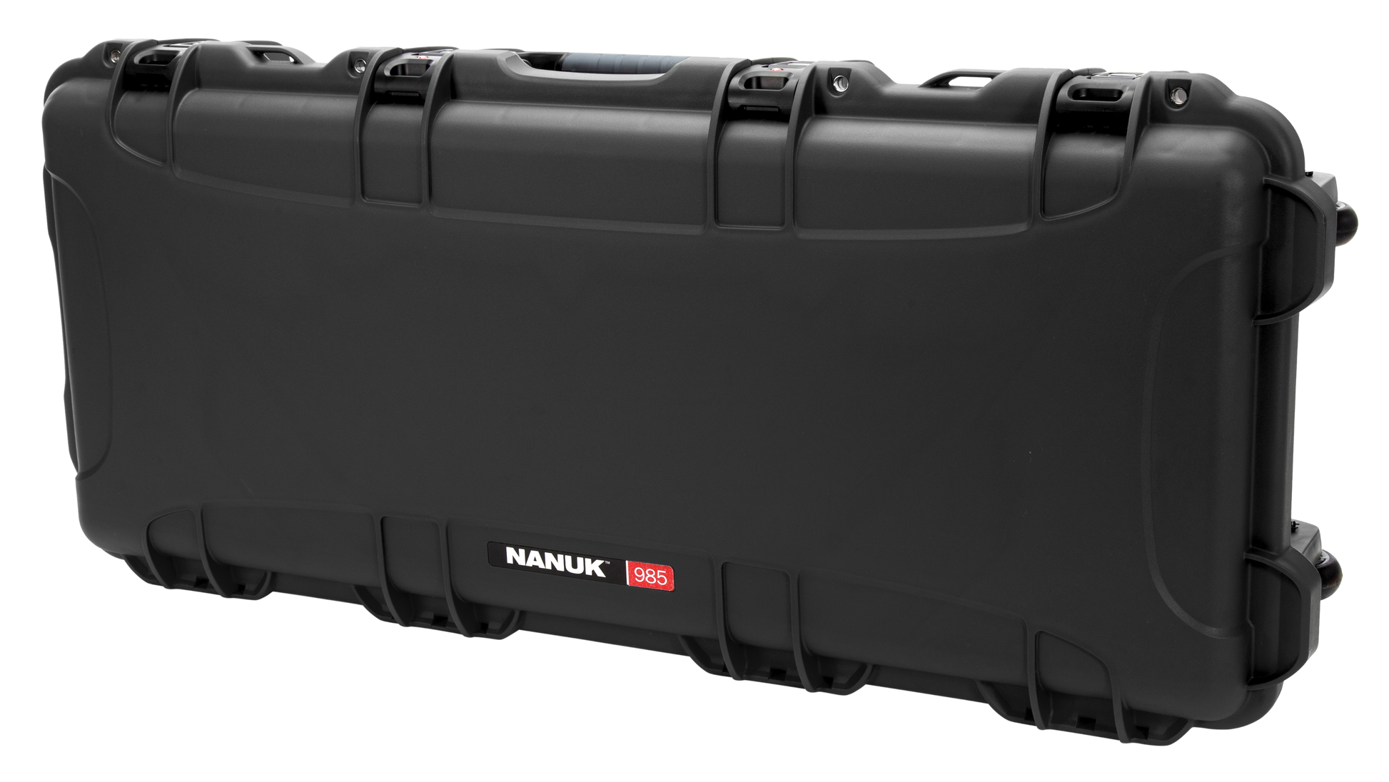 Built to survive the outdoors, the nanuk 985 takedown is favored by sportsmen, hunters and skeet shooters this 36 takedown sized case features two spring loaded handles and rolls around smoothly with its polyurethane wheels.With an ip67 waterproof rating, the nanuk 985 keeps your equipment safe and protected with its four patented powerclaw latches.For extra security, two latches feature an integrated tsa accepted key lock to keep your equipment securely locked during transit but accessible for inspection by the tsa when required.This indestructible mil-spec case is equipped with a lid stay feature to keep the case safely open when in use and the reinforced stainless-steel eyelets can be used to secure additional padlocks.The foam insert also features storage areas to accommodate popular accessories and a dedicated slot for a desiccant cannister.Equipped with two tsa accepted locking latches and polyurethane wheels, the 985 takedown case will protect and transport your shotgun in complete security.