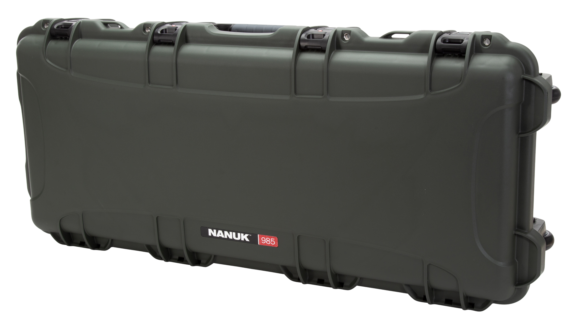 Built to survive the outdoors, the nanuk 985 takedown is favored by sportsmen, hunters and skeet shooters this 36" takedown sized case features two spring loaded handles and rolls around smoothly with its polyurethane wheels.With an ip67 waterproof rating, the nanuk 985 keeps your equipment safe and protected with its four patented powerclaw latches.For extra security, two latches feature an integrated tsa accepted key lock to keep your equipment securely locked during transit but accessible for inspection by the tsa when required.This indestructible mil-spec case is equipped with a lid stay feature to keep the case safely open when in use and the reinforced stainless-steel eyelets can be used to secure additional padlocks.The foam insert also features storage areas to accommodate popular accessories and a dedicated slot for a desiccant cannister.Equipped with two tsa accepted locking latches and polyurethane wheels, the 985 takedown case will protect and transport your shotgun in complete security.