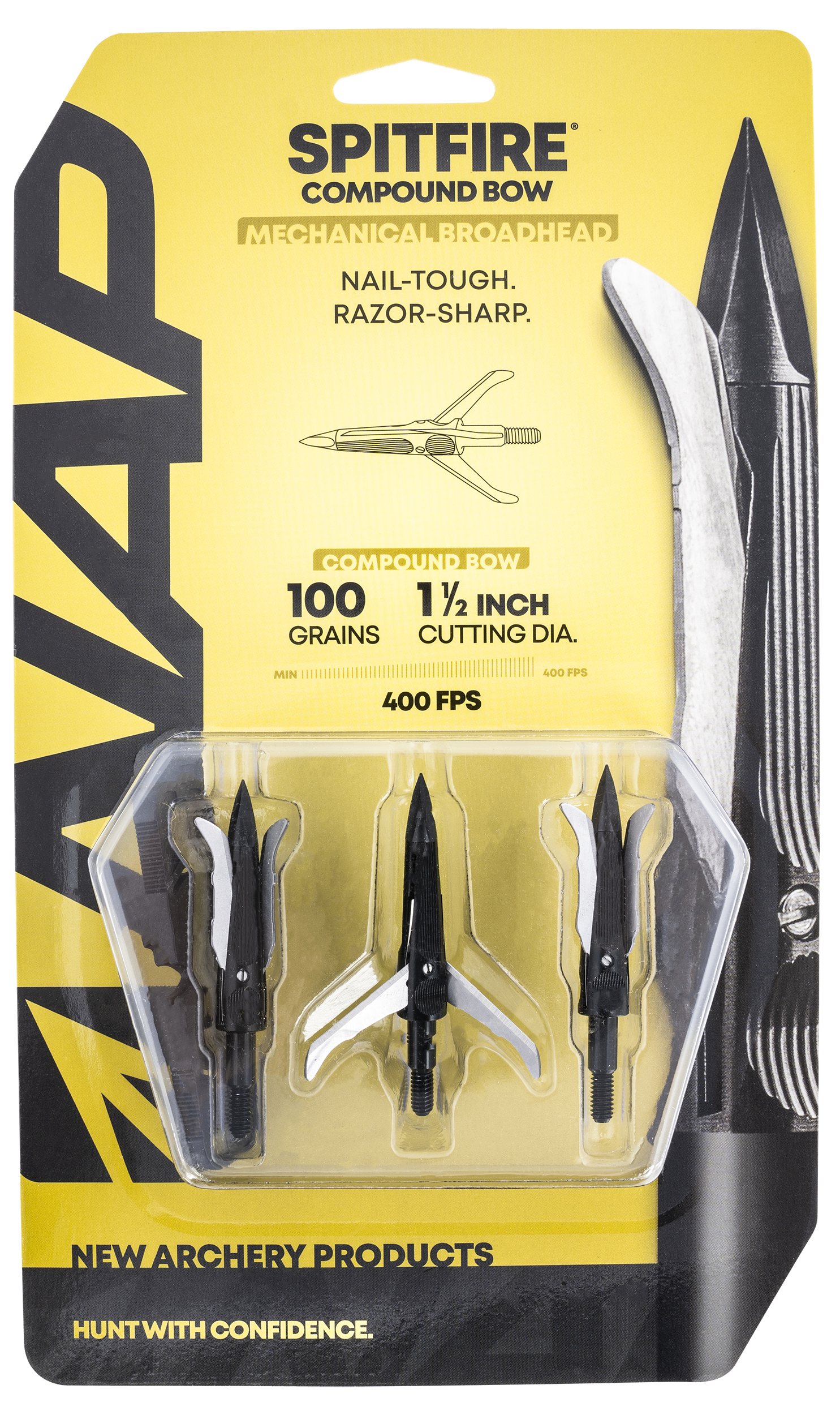 Spitfire is undoubtedly the most trusted name in mechanical broadheads.Spitfires fly straight with pinpoint accuracy and perform better than any other mechanical broadhead thanks to our ultra-sharp diamize blades.Renown nap durability ensures that the spitfire will stand up under the toughest conditions.Naps patented spring clip technology ensures your blades will stay closed in your quiver and in flight without the need for any rubber bands or o-rings.