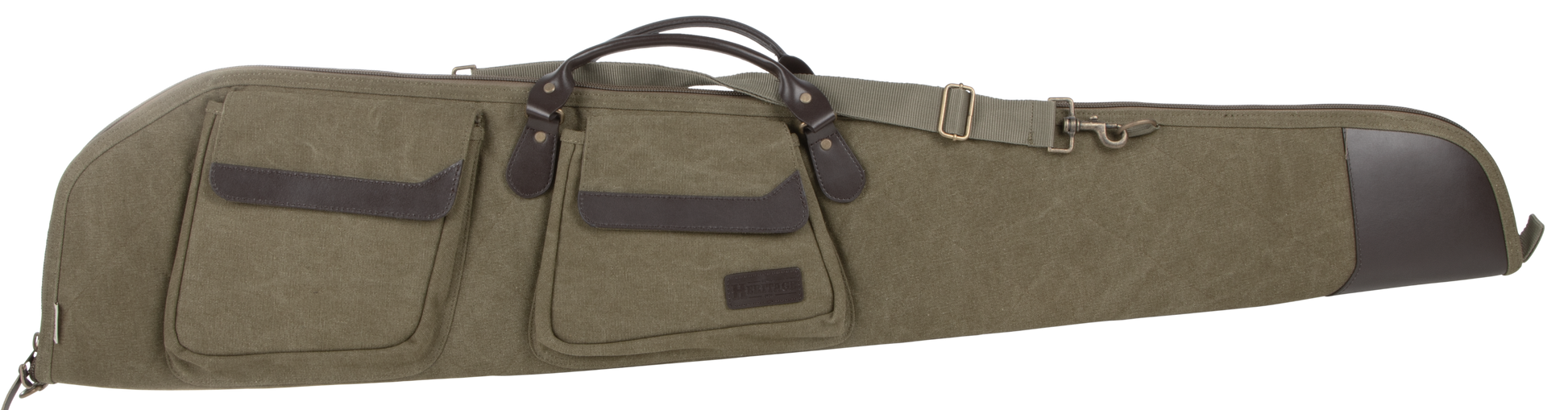 The north platte heritage rifle case, by allen, is a 48-inch rifle case that is made of 12oz cotton canvas quilted material with split leather trim accents.It comes with rolled handles, metal zipper and hardware over-sized flap pockets, a hanging loop, as well as an adjustable and removable shoulder strap.