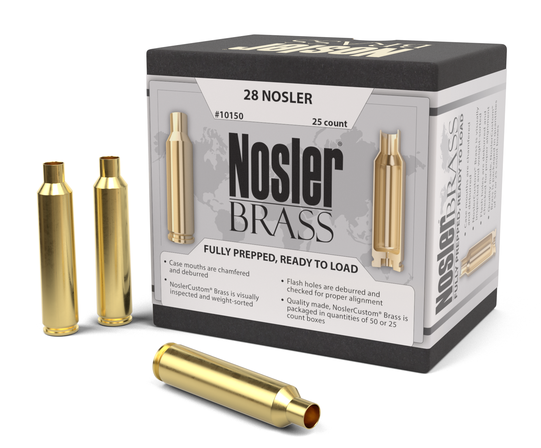 Nosler Unprimed Cases, Nos 10150 Custom Brass 28 Nosler 25