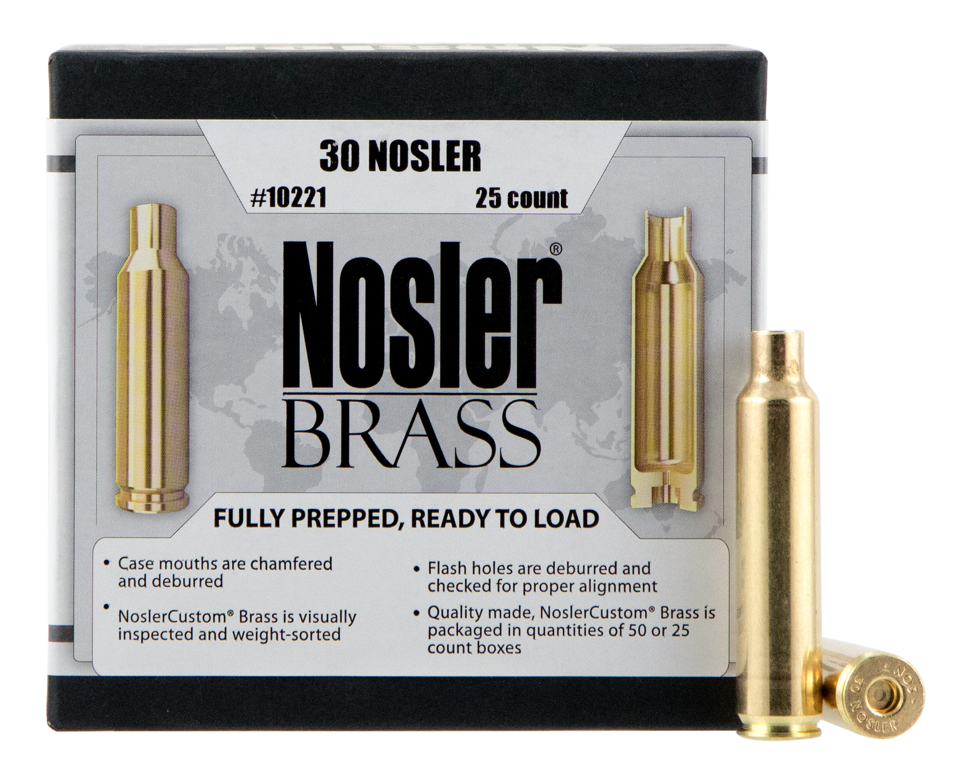 Custom brass brings premium quality cartridge cases bearing the nosler head stamp to the reloader.Made in the usa, nosler custom brass is weight sorted for maximum accuracy and consistency potential.