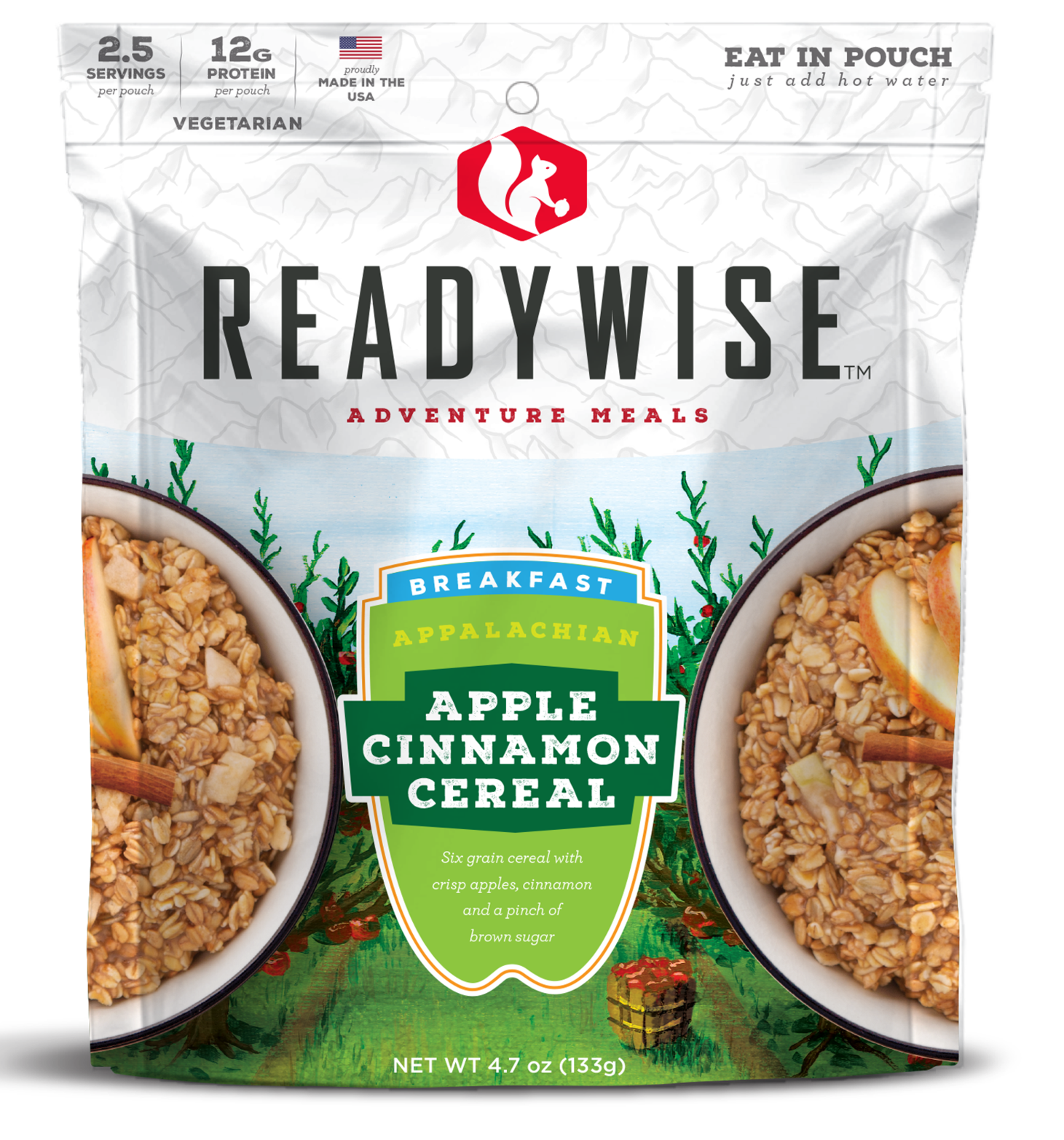 Readywise company provides dependable, simple and affordable food options for out of kitchen situations.With a wide variety of options for families and individuals interested in storing long-term foods in case of emergency, on a camping or road trip, or at the lease, you may never miss the kitchen at all.There is an assortment of great-tasting gourmet entrees, vegetables and fruits you and your family will love to eat.These ready-made, freeze-dried and dehydrated meals are nitrogen-packed in mylar pouches to maintain freshness and are prepared in minutes simply by adding boiling water.Each pouch of the appalachian apple cinnamon cereal contains 2.5 servings and is resealable.These pouches are lightweight making them easily portable on any outdoor adventure.Just add water and you can eat directly from the pouch.