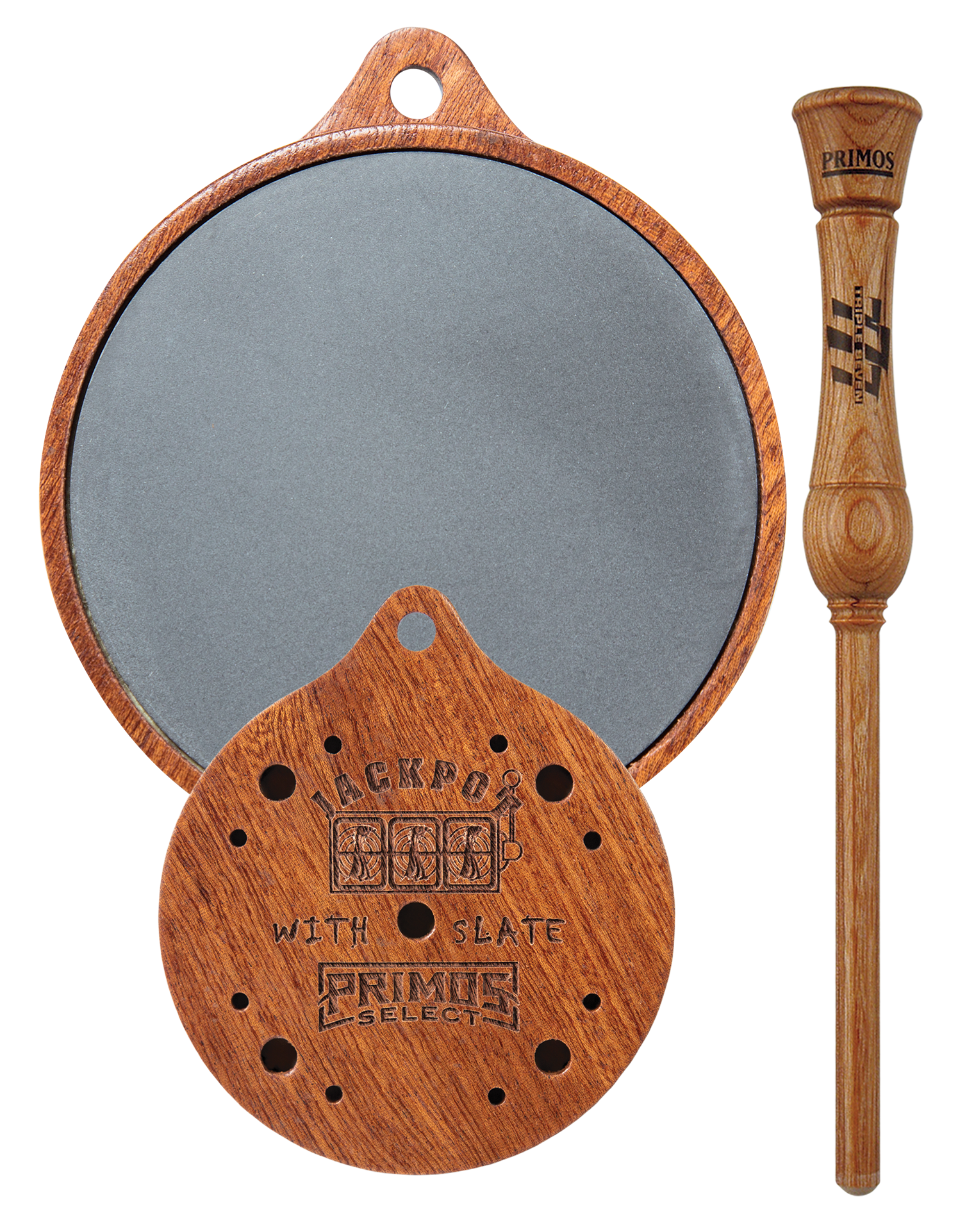 The jackpot with slate has an exotic south american hardwood pot and pennsylvania slate surface.Pennsylvania slate is the easiest surface to use and produces authentic turkey sounds.It is capable of reproducing the turkey language from piercing yelps all the way to the most subtle purrs.The one-piece-laminated hardwood striker that tips the odds in your favor by producing sharp and loud cuts on the jackpots slate surface.The quality craftsmanship we put into this call is unparalleled at any price.