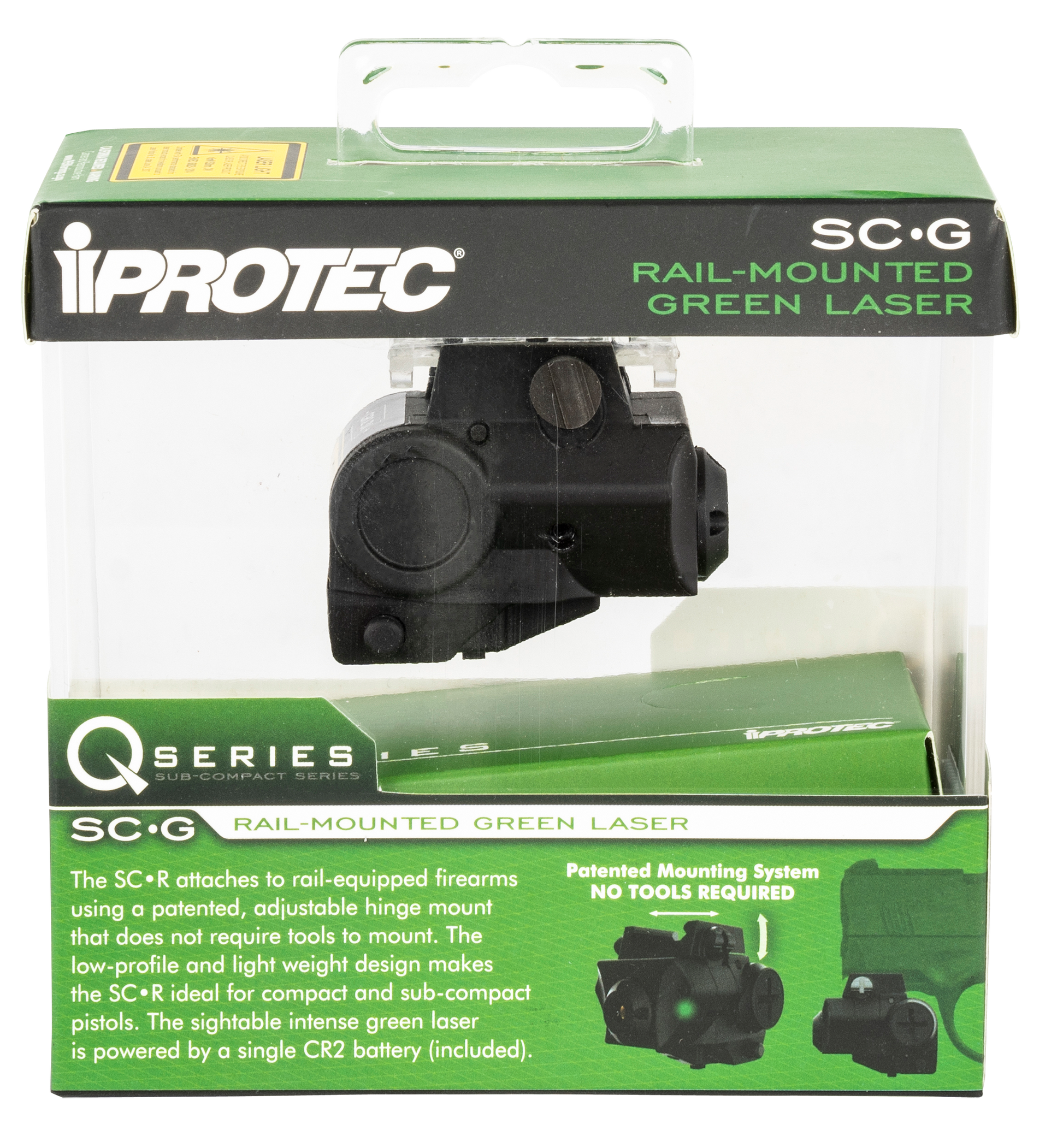 The sc-g uses a 5-milliwatt, 532 nanometer green laser to sight up to 457 meters away.The laser is controlled by two side-positioned on/off buttons for left and right-handed use.Ideal for rail-equipped compact and subcompact pistols.It has an adjustable hinge mount design; no tools required.Ideal for rail-equipped compact and subcompact pistols.It is made from heavy-duty fiber reinforced nylon, and is water and impact-resistant.Includes allen wrench and battery.