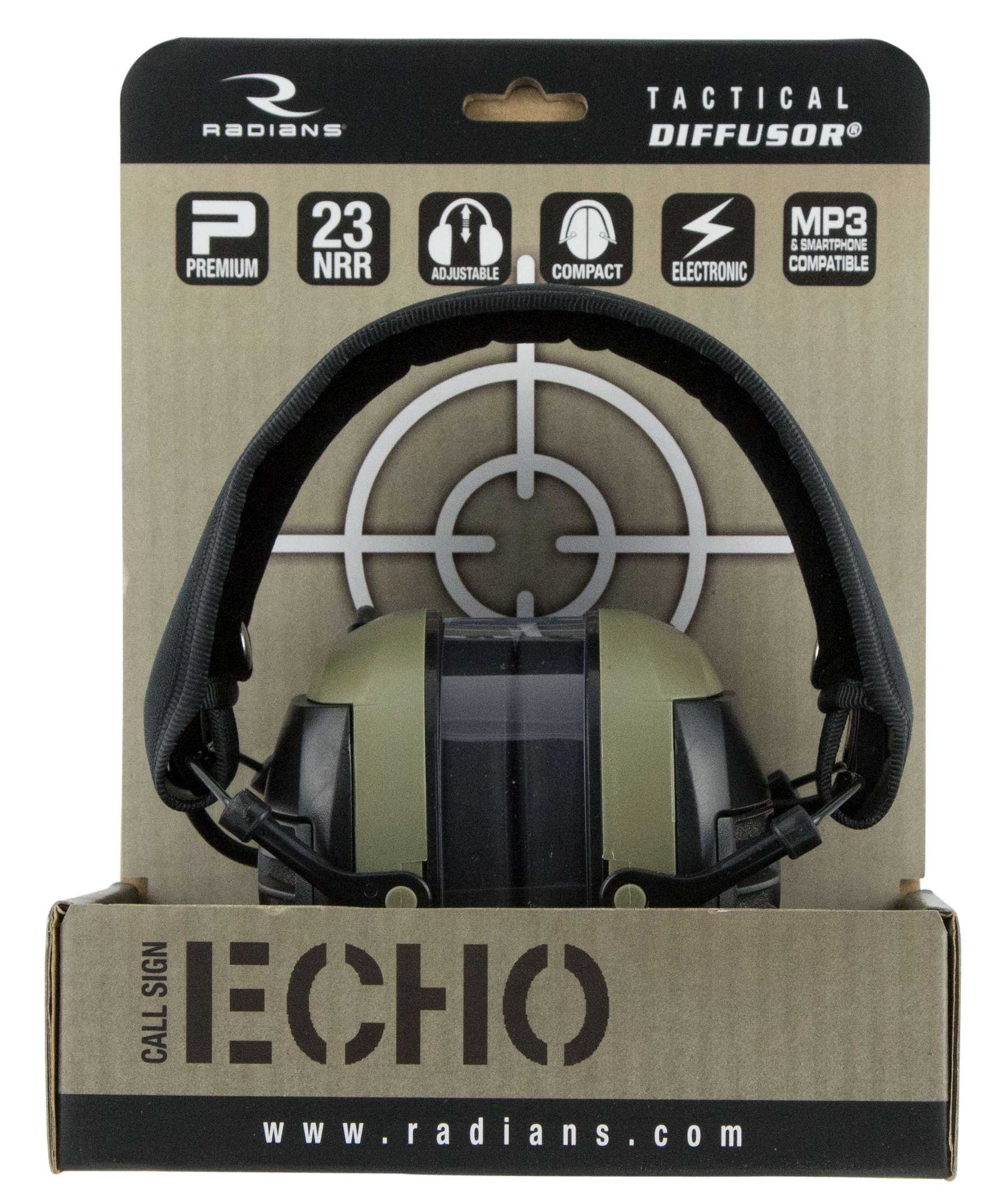 Radians' diffusor electronic earmuff is excellent hearing protection for all hunters and shooters.It amplifies low level sounds while protecting against harmful noise.Listen to your favorite smartphone or mp3 device with the added input jack.A compact folding feature allows for easy storage.The diffusor also features an adjustable headband.This model has a 23db nrr.