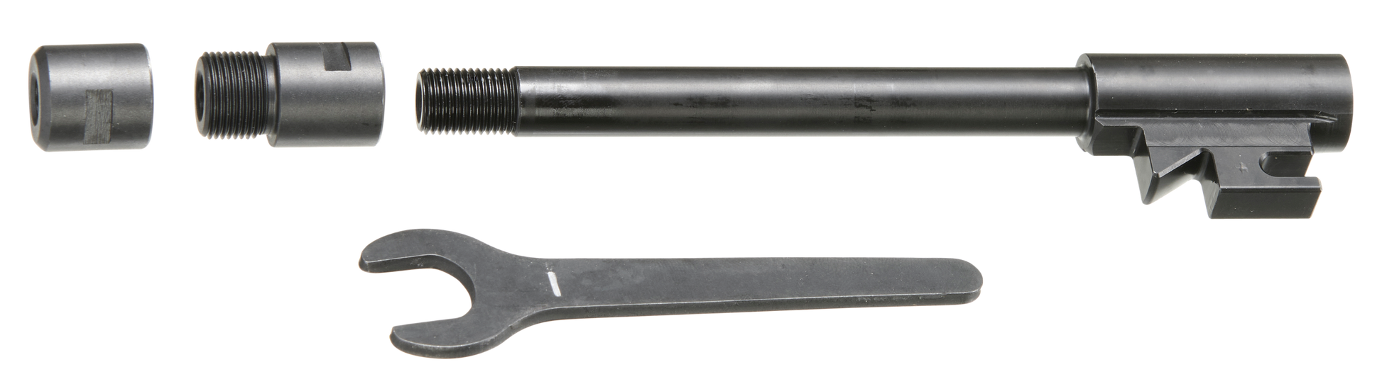 This genuine ruger factory accessory is compatible with ruger-57 pistol.The factory- manufactured, threaded stainless steel barrel accepts any 1/2"-28 (class 2a) muzzle device.This kit contains a factory-manufactured stainless steel barrel for optimal fit and function.Installing the threaded barrel is quick and easy with no gunsmithing required.Thread protector, adapter and wrench included.Made in the usa.