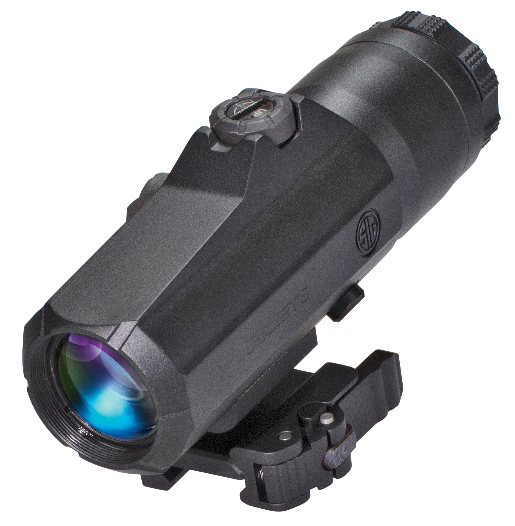 Sig's juliet6 magnifier is designed with crystal clear optics, rugged aluminum housing and a rock solid flip to side mount.It features a powercam 900 mount for fast transitions from close quarters to intermediate range targets.The magnifier utilizes a quick release mount with built-in recoil lugs for a repeatable zero, front thread-in lens protector and rear flip back and is ipx-8 waterproof.The juliet6 also has a dialectic coated prism and an adjustable height via included spacers (1.41", 1.53" and 1.63").