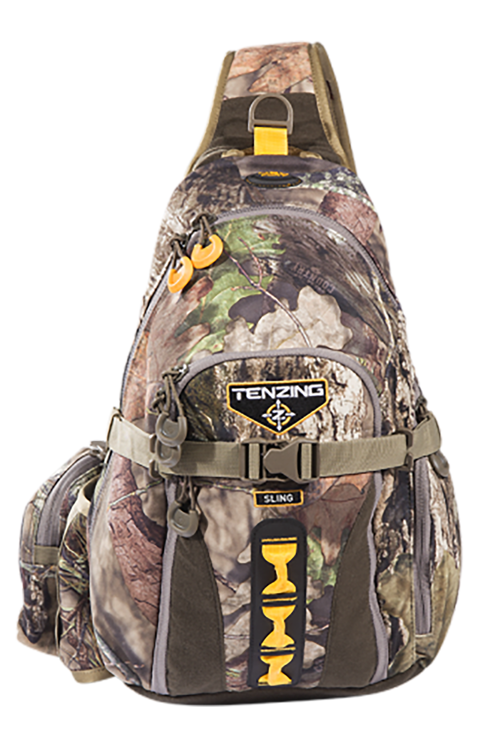 The sling is the ultimate archer's pack.The single sling design fits comfortably over either shoulder, creating complete mobility.Five total compartments account for 750 cubic inches of storage space, with sturdy closures and multiple access points.Easily access your rangefinder from the specialized optics compartment, or reach for your quiver from the integrated quiver mount.Your bow will be clipped in and at the ready, so you can take a smooth, unrestricted shot when the moment is right.