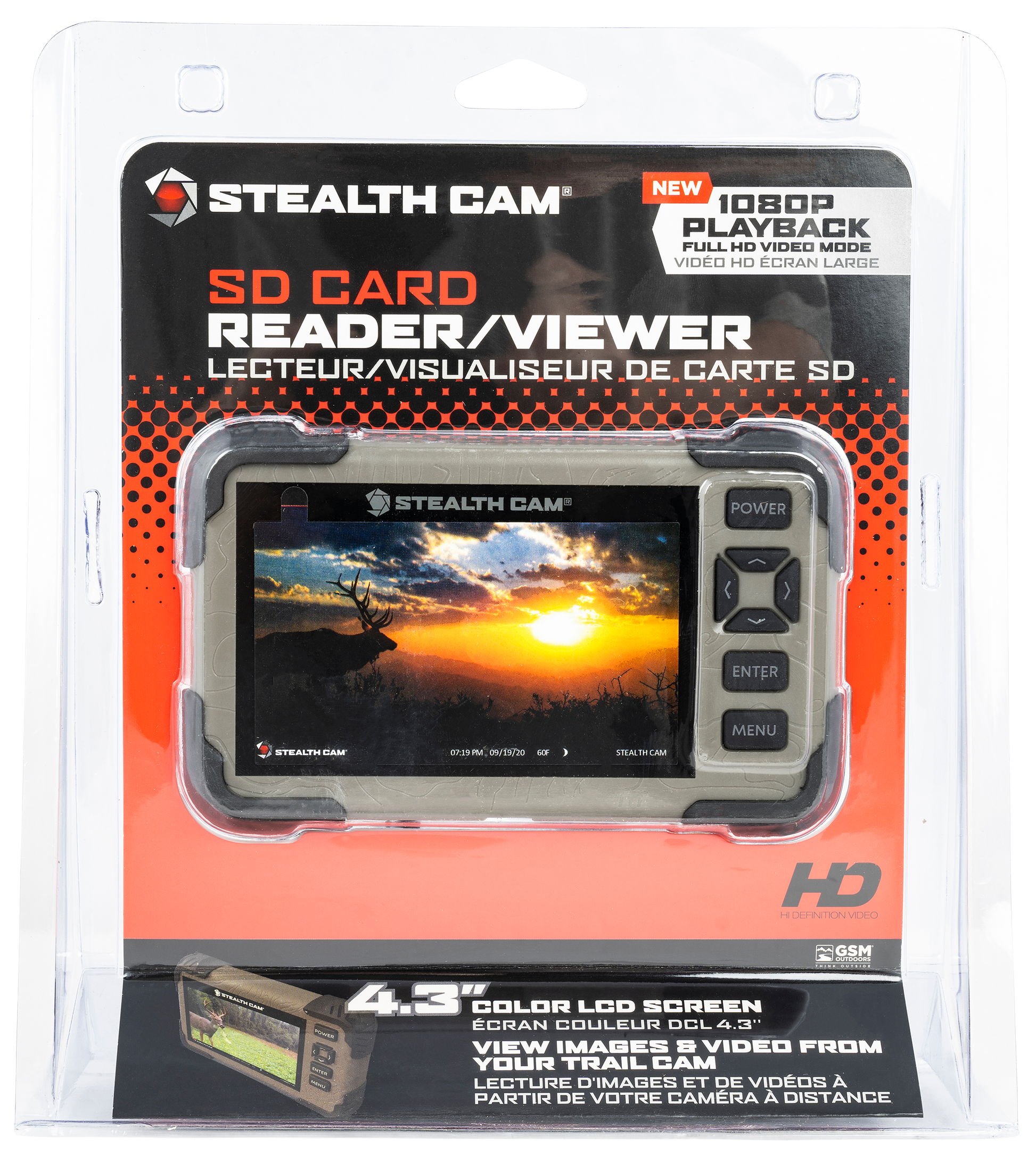 The hd 4.30" color viewer from stealth cam features 1080p video playback; headphone jack for audio; view/delete options; intuitive menu operation; adjustable brightness & volume and micro usb slot.