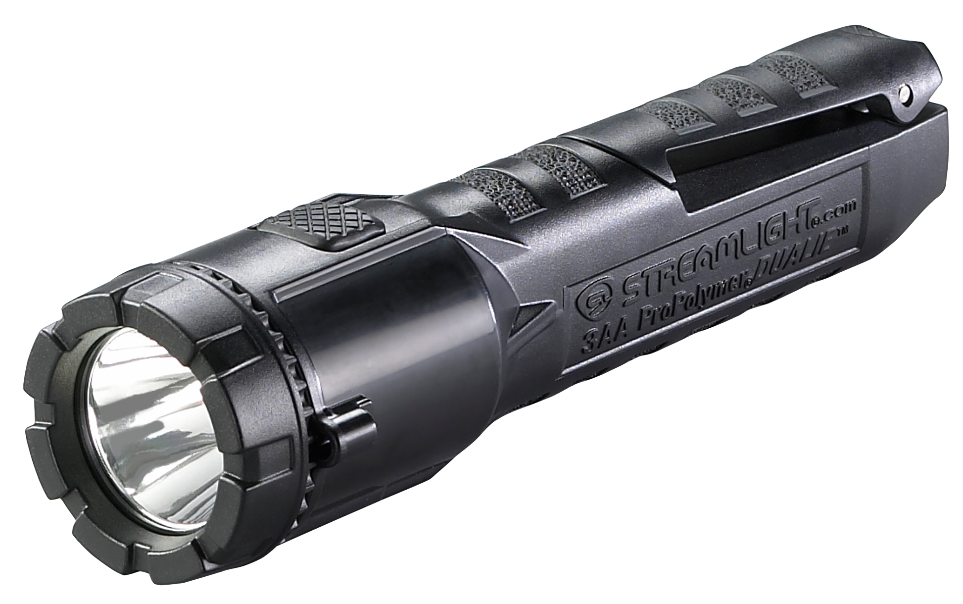 The dualie provides two types of illumination for multi-directional lighting and special uses.Choose one spot beam or one flood light or both.It is constructed of impact resistant polymer resin with vented v-ring seal and vented gasket seal.An integrated, spring loaded belt clip contained within body outline.The spot beam utilizes smooth parabolic reflector for tight beam with optimum peripheral illumination.Features two leds and three lighting modes- spot 140 lumens, flood 140 lumens, spot and flood simultaneously 245 lumens; dual head switches on either side of the body for easy beam selection and one-handed operation.Includes three aa alkaline batteries.